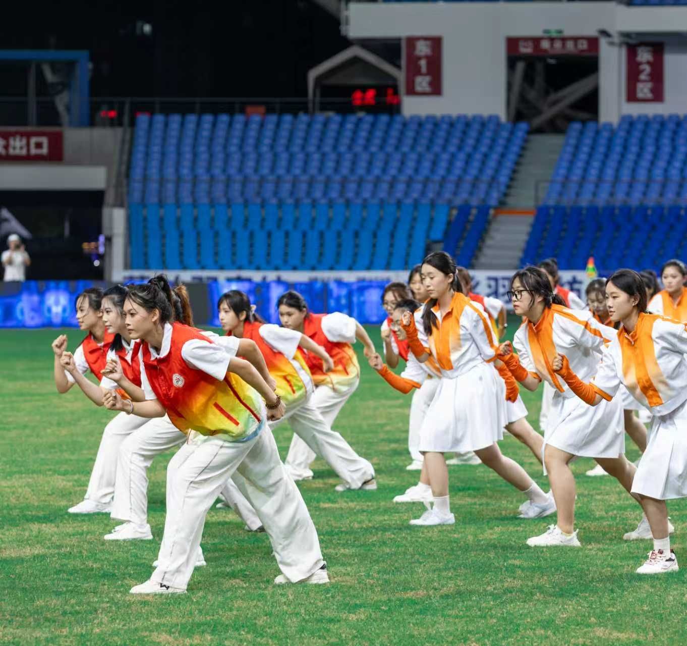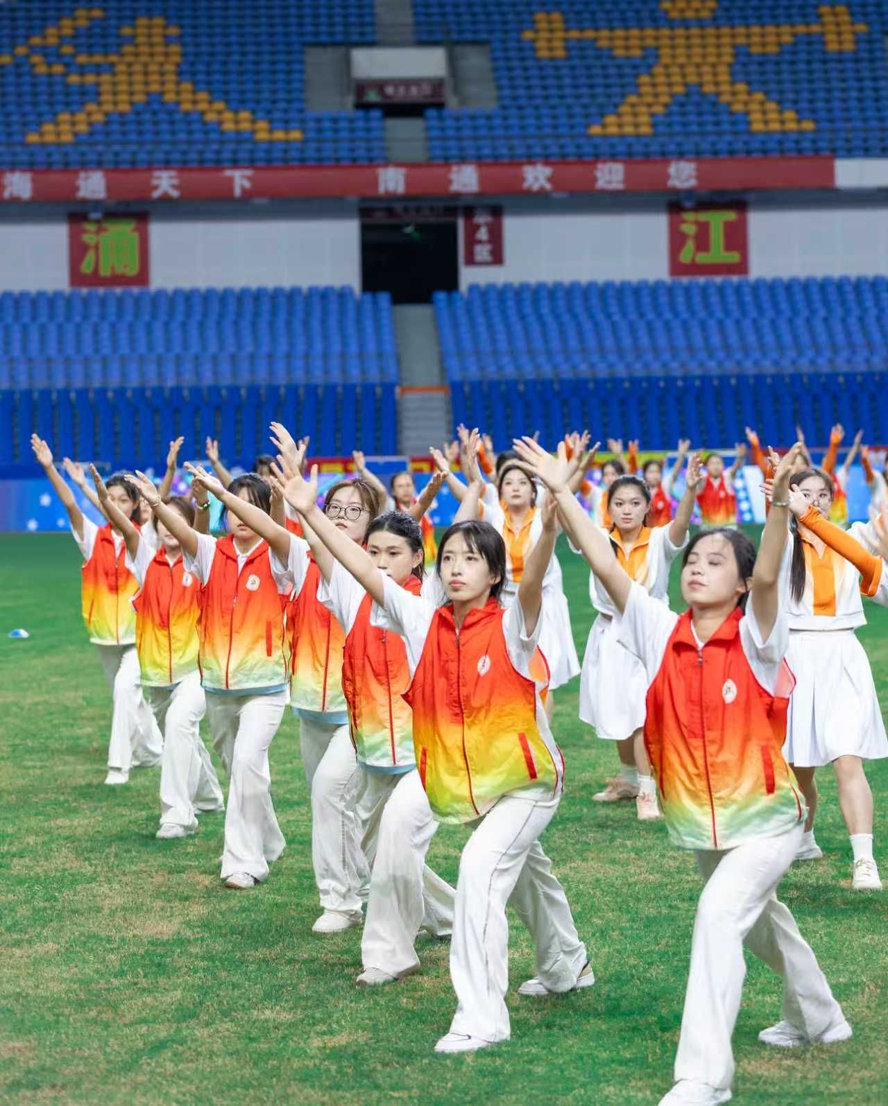 在比赛中场时刻,我校大学生志愿者参演的原创歌舞《南通力量》以及《旗韵》,不仅为赛事注入了青春气息,更在激烈的竞赛间隙,展现了当代大学生对体育精神的传承。