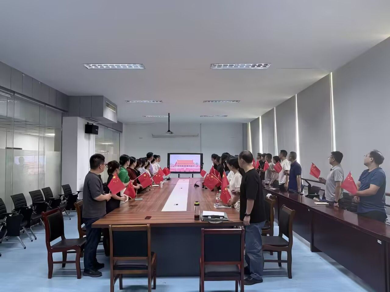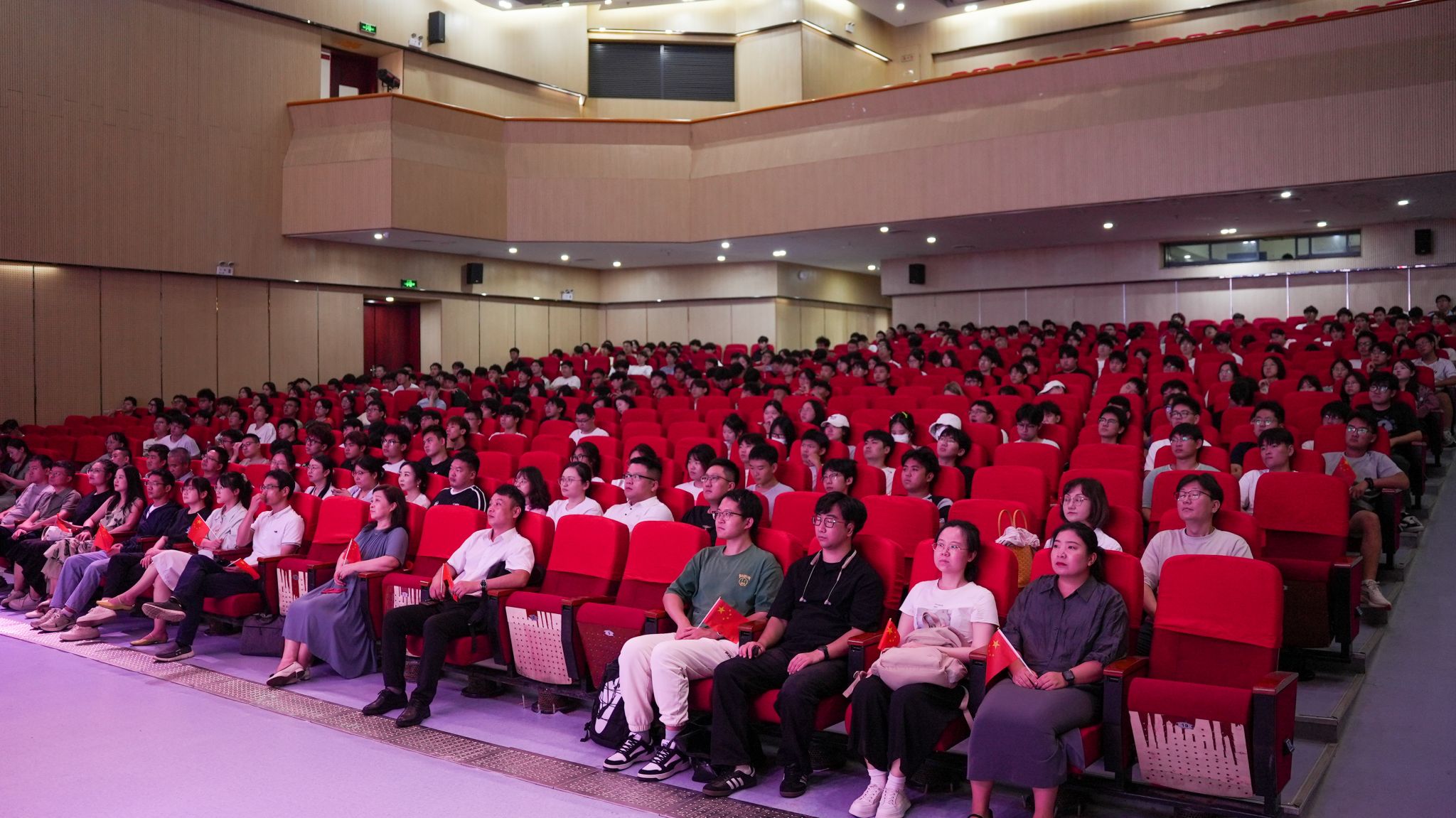 观看现场,气氛庄重热烈。当鲜艳的五星红旗在天安门广场冉冉升起,全体师生自发肃立,齐声高唱国歌。大家全程凝神观看,心潮澎湃,深受感染。师生们挥舞着国旗,深刻感受着这场展现国威、军威的盛大典礼所带来的视觉冲击和心灵震撼,现场不时爆发出热烈掌声。