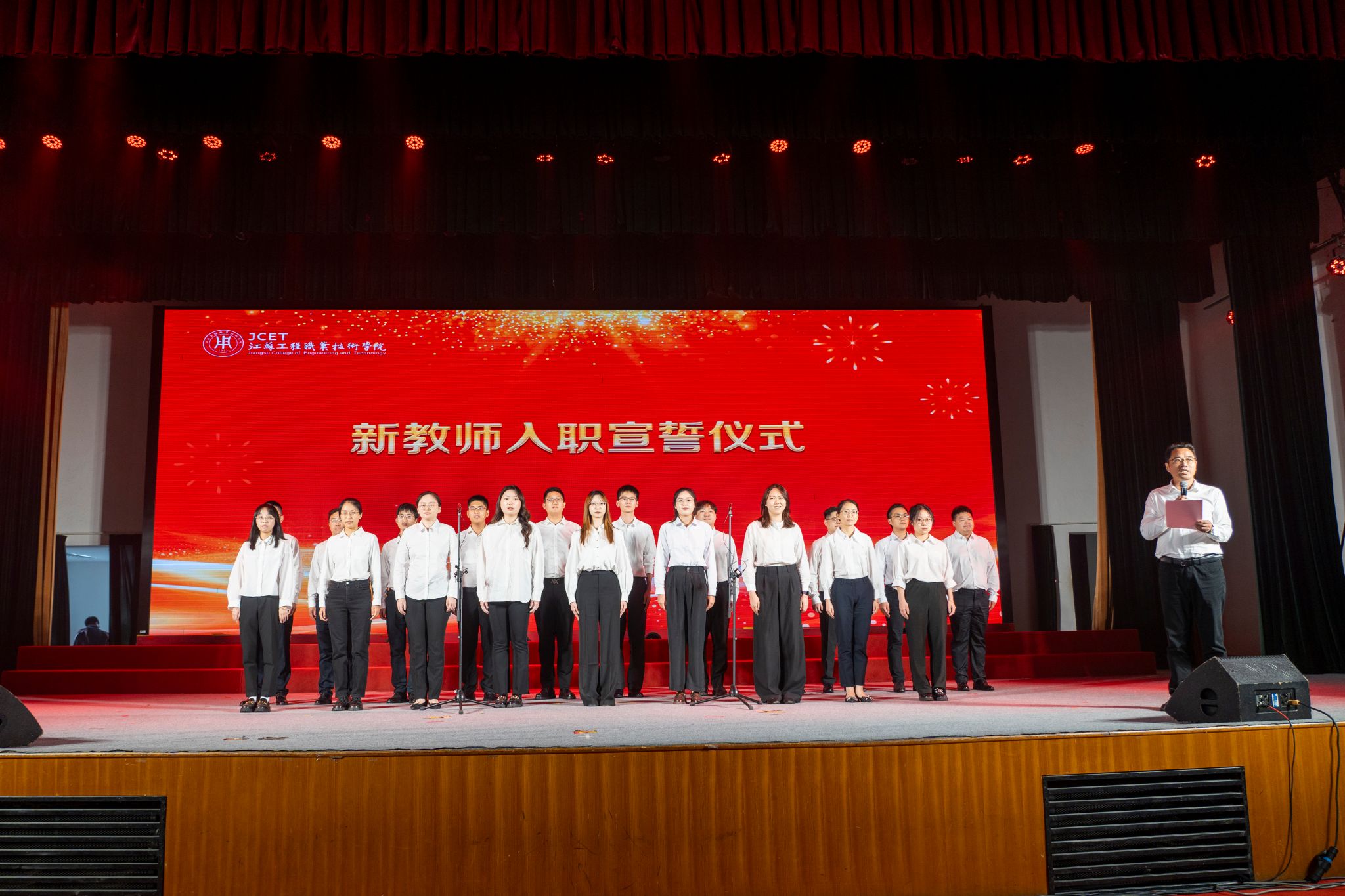 会上,举行了新教师入职宣誓仪式。24名新教师在校纪委副书记、纪委办主任郭智君的带领下郑重宣誓,展现了全体新教师献身教育事业、履行教师职责的坚定决心。大会在经济管理学院教师大合唱《爱我中华》中落下帷幕。(宣传部)
