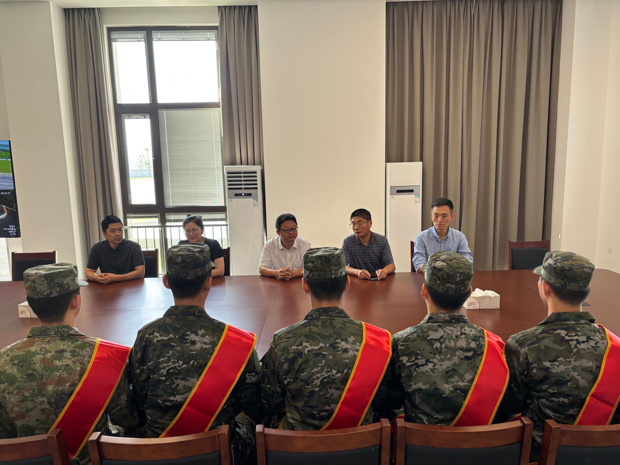 9月15日上午,校党委委员、副校长孙兵,人武部部长顾培中,学工处副处长朱平,纺织服装学院党总支副书记刘桂阳,信息工程学院党总支副书记高飞一行前往役前集训点为即将入伍的13名学子送行。