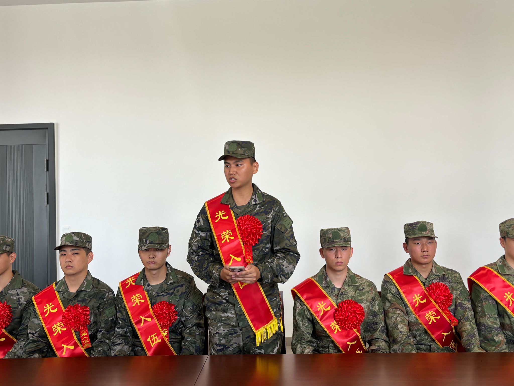 建筑工程学院应届毕业生蒋贵阳作为新兵代表发言。他表示:“从校园到军营,变的是身份,不变的是责任与担当。我们定当刻苦训练、勇争第一,用实际行动践行‘请党放心,强军有我’的青春誓言!”