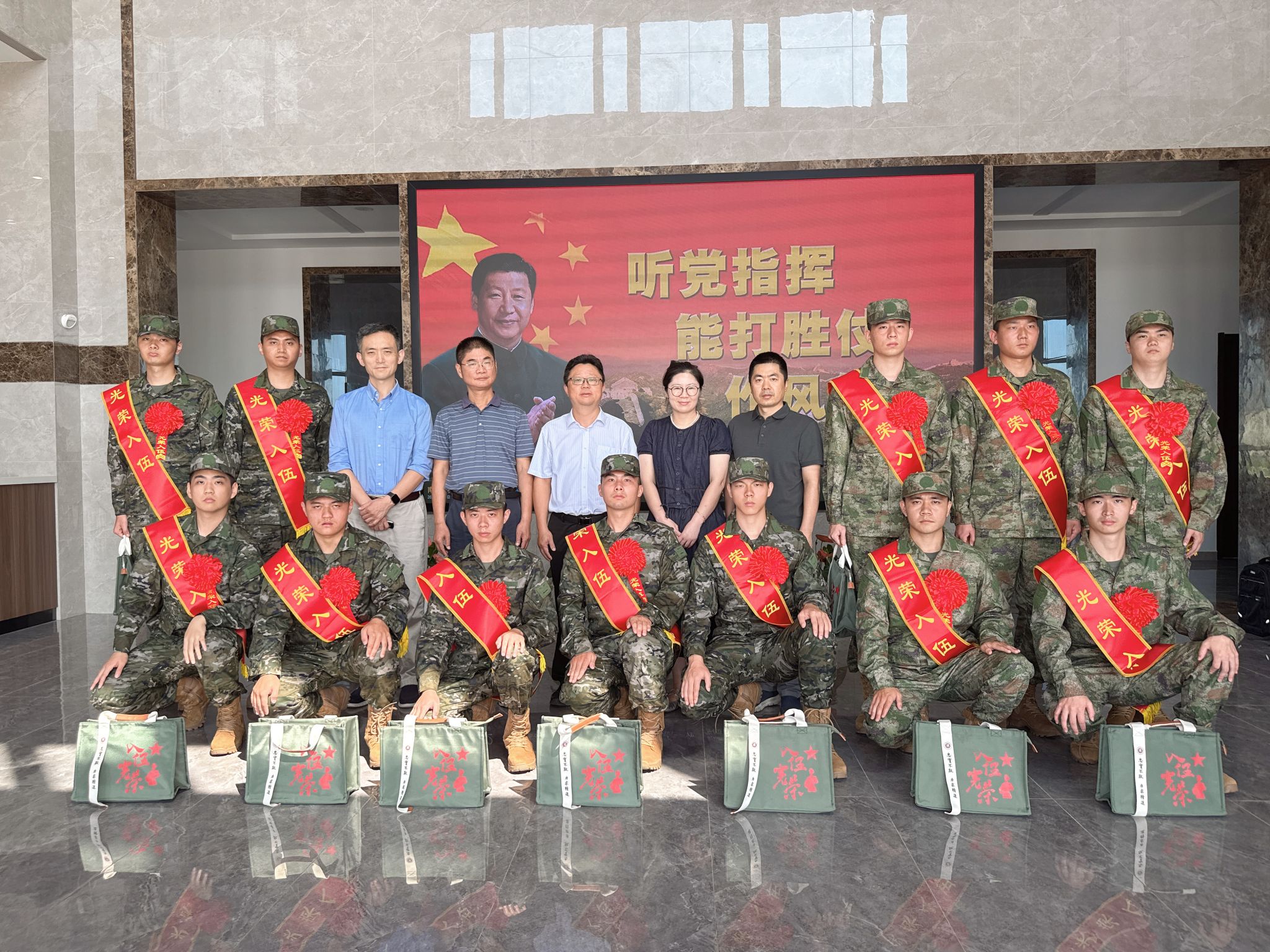 欢送仪式上,孙兵代表学校向入伍学生致以崇高敬意和诚挚祝贺。他深情寄语:“穿上军装,你们既是江苏工院的骄傲,更是祖国的忠诚卫士。希望你们牢记‘忠实不欺、力求精进’的校训,在部队锤炼过硬本领,以优异的成绩为母校争光,为国防事业添彩!”顾培中勉励新兵们快速适应军营生活,将所学专业融入强军实践,成长为有灵魂、有本事、有血性、有品德的新时代军人。