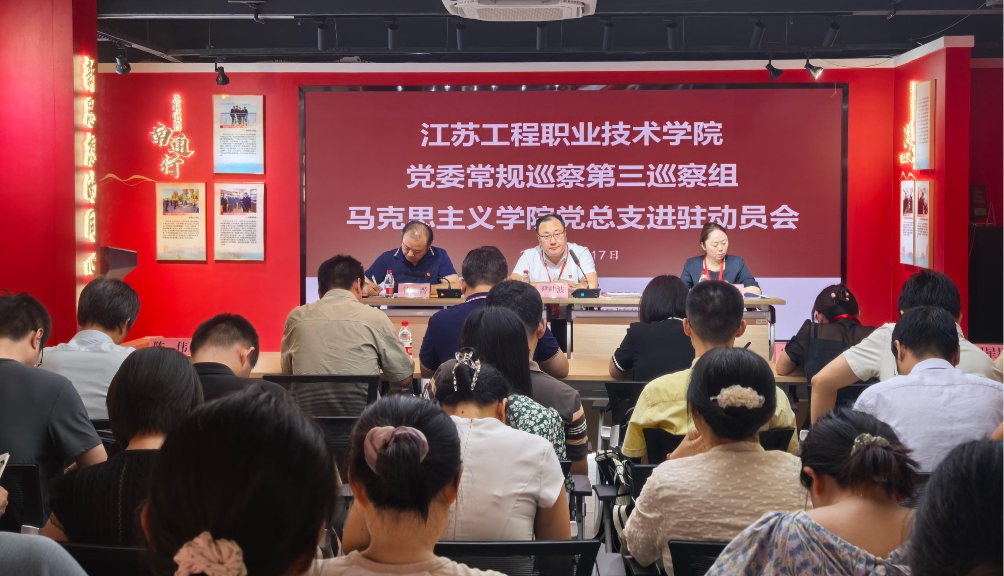 9月17日,根据学校党委巡察工作统一部署,2025年党委常规巡察第一、第二、第三巡察组分别召开机关党总支、智能制造学院党总支、马克思主义学院党总支巡察进驻动员会,对党委巡察工作进行动员部署。校党委委员、巡察组组长孙兵、郭江峰、尹桂波出席会议,进驻动员会由被巡察单位党总支书记主持。常规巡察组全体成员、巡察办工作人员、被巡察单位全体教职工以及学生代表参加会议。