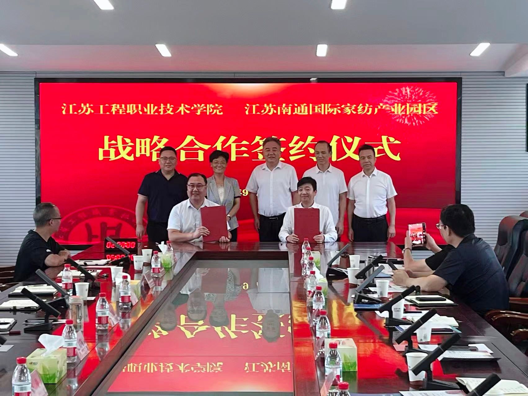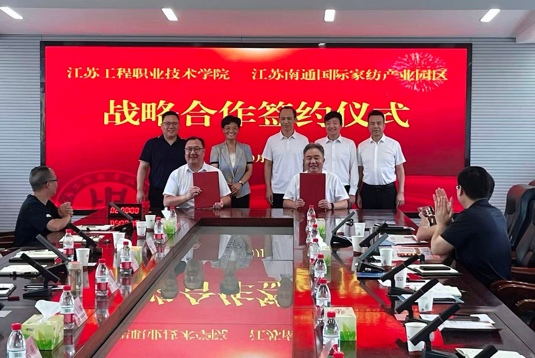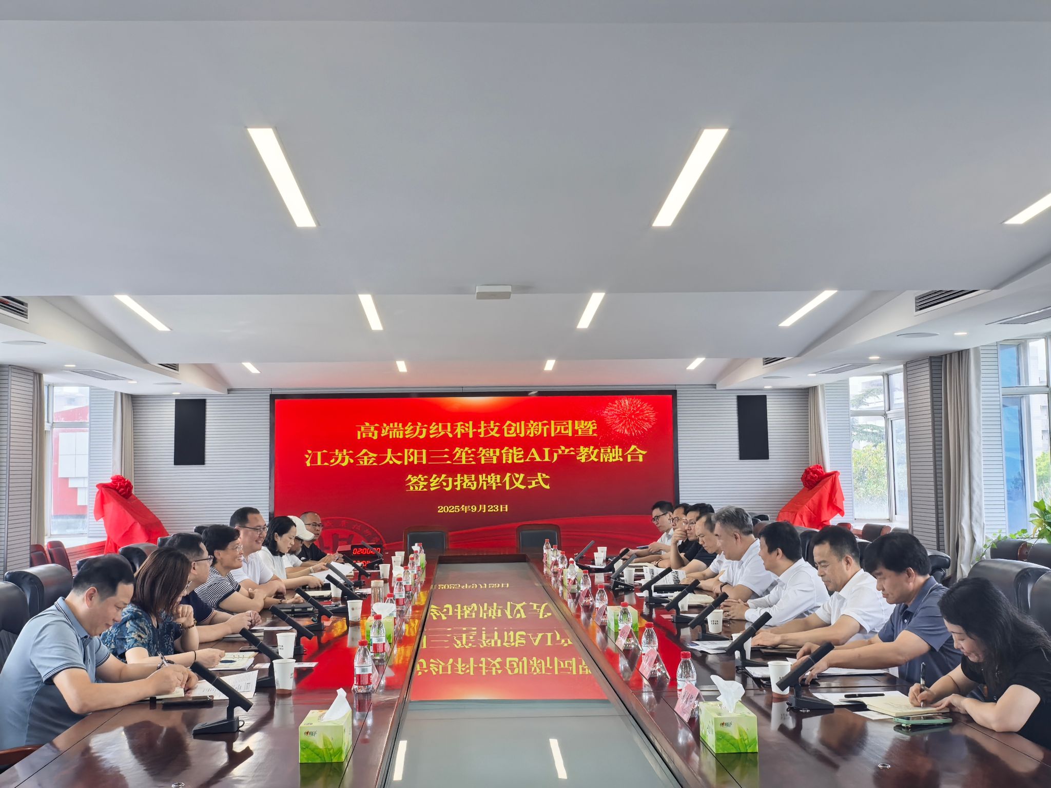 校地、校企双方分别签署了《高端纺织科技创新园共建协议》和《校企战略合作框架协议》,并举行了“高端纺织科技创新园”和“江苏工院三笙AI产教融合数字实训中心”揭牌仪式。