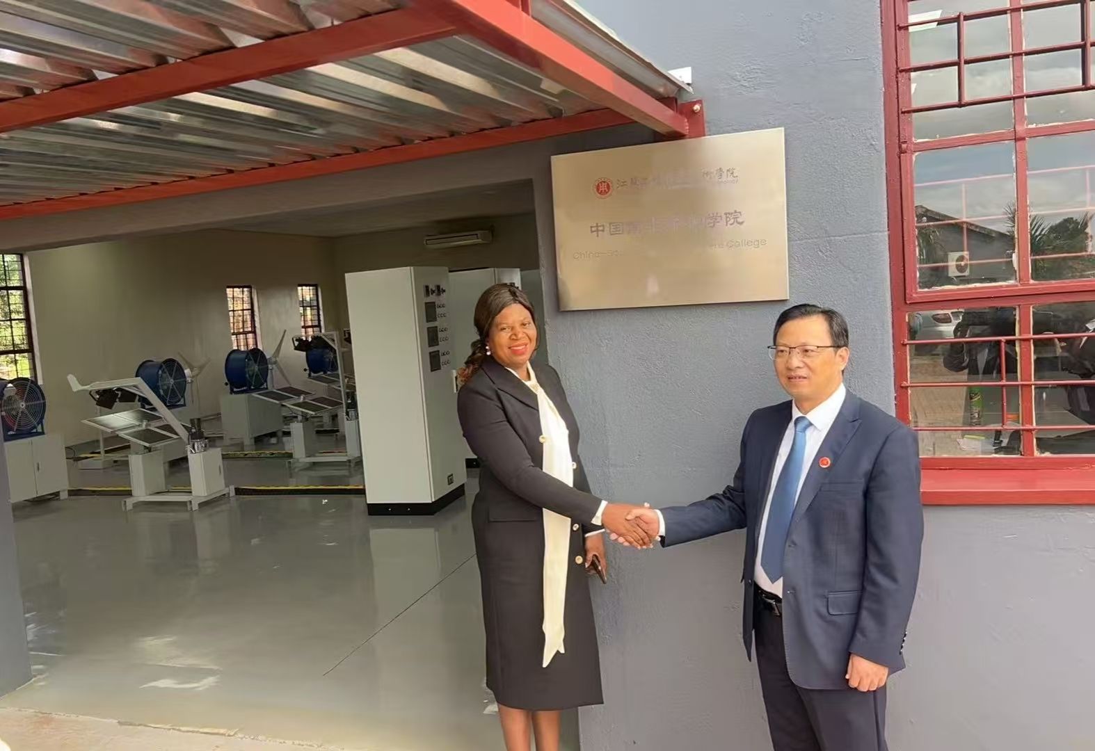 据悉,范贝职业技术学院是南非顶尖的技术与职业教育培训机构(TVET)之一,以“实践导向、就业优先”为办学特色,为学生开设覆盖新能源、工程技术、信息技术等领域的实践与学术课程,在南非职业教育体系中具有重要影响力。该校亦是2023年我校牵头成立的“中国南非可再生能源产教联盟”核心成员,双方此前已在课程共建、学术交流等方面积累了良好合作基础。马克瓦雷拉校区作为范贝职业技术学院旗下七个校区中规模最大的校区,凭借“卓越学术成果与现代技术深度整合”的办学优势,成为此次“中国南非郑和学院”落地的核心载体。