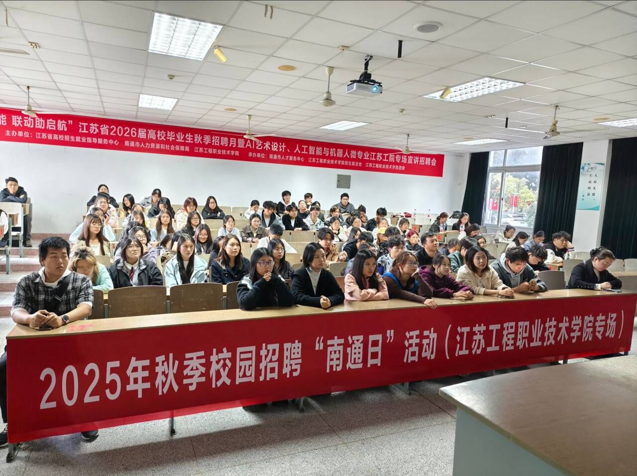 为深入贯彻落实国家关于促进高校毕业生就业创业的决策部署,10月22日下午,“职引新动能 联动助起航”江苏省2026届高校毕业生秋季招聘月暨江苏工院AI艺术设计、人工智能与机器人微专业专场宣讲招聘会在我校崇謇楼108教室举办。