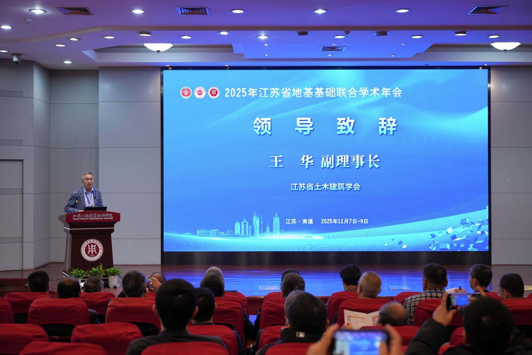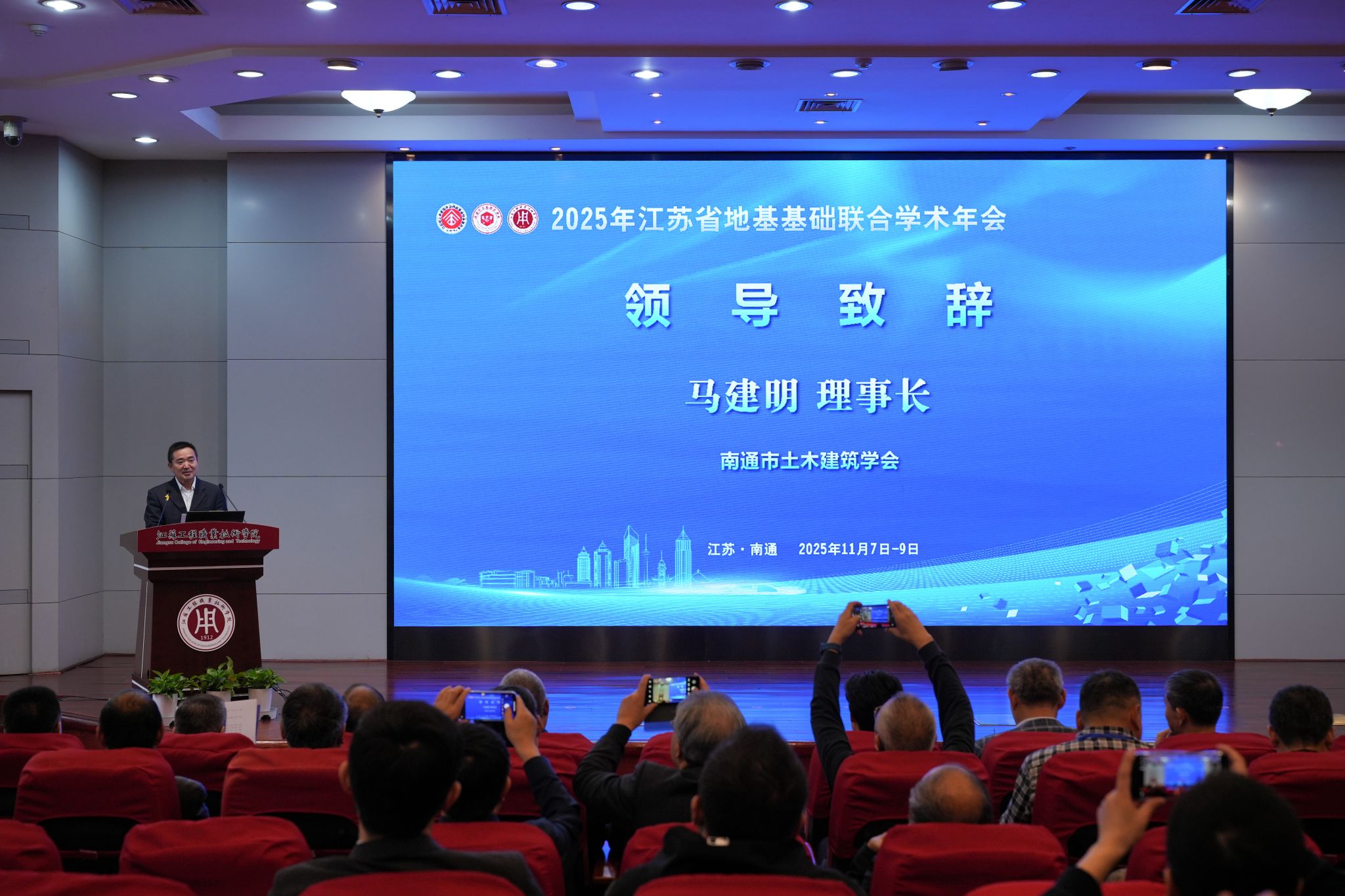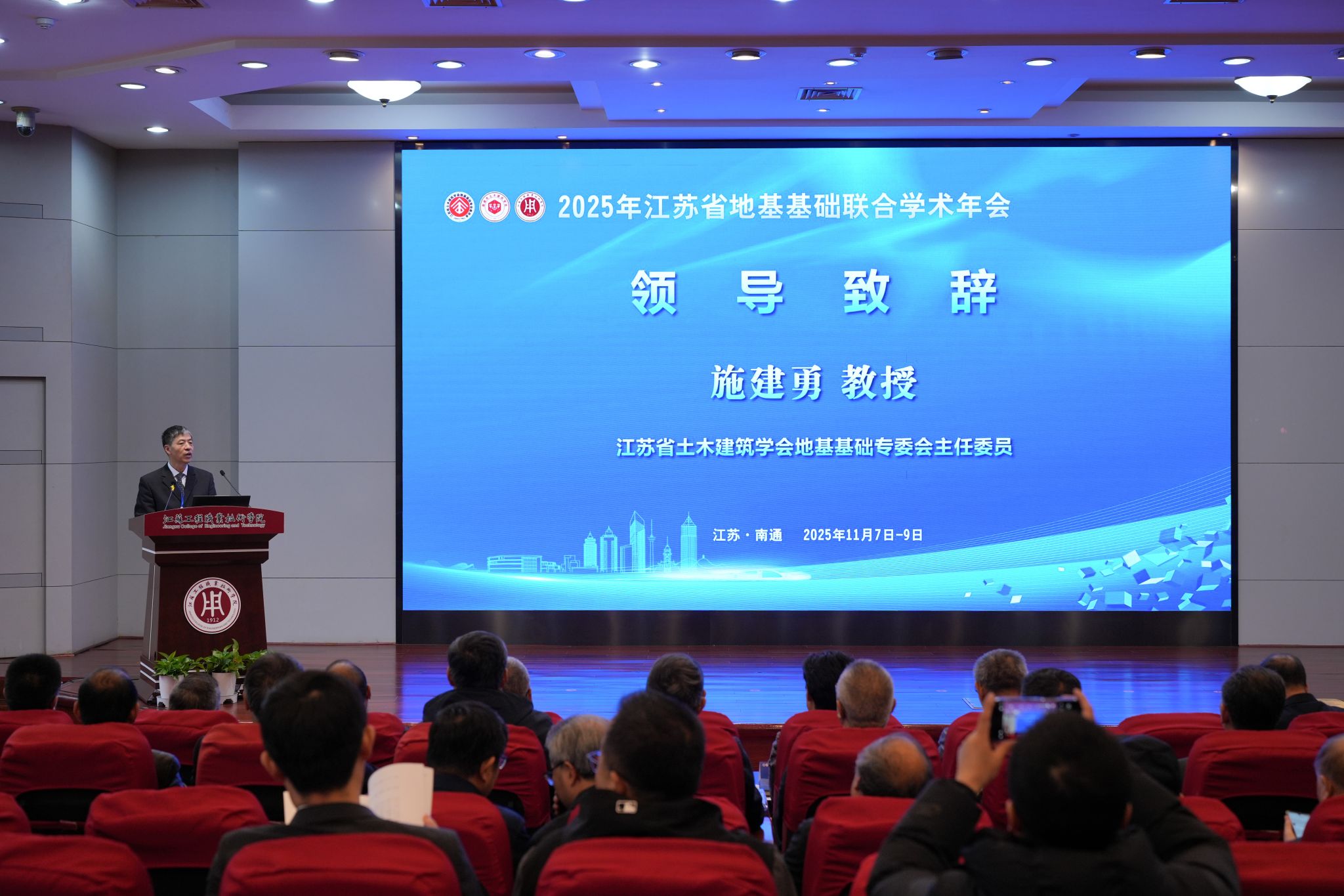 施建勇在讲话中指出,这是省地基基础学术年会第三次来到南通,感谢南通地区同仁的大力支持,本次年会邀请了长三角地区全国工程勘察设计大师、教育部长江学者特聘教授等多位顶级专家,就“十五五”期间地基基础新质生产力实现途径与举措开展探讨,力争达成南通共识。