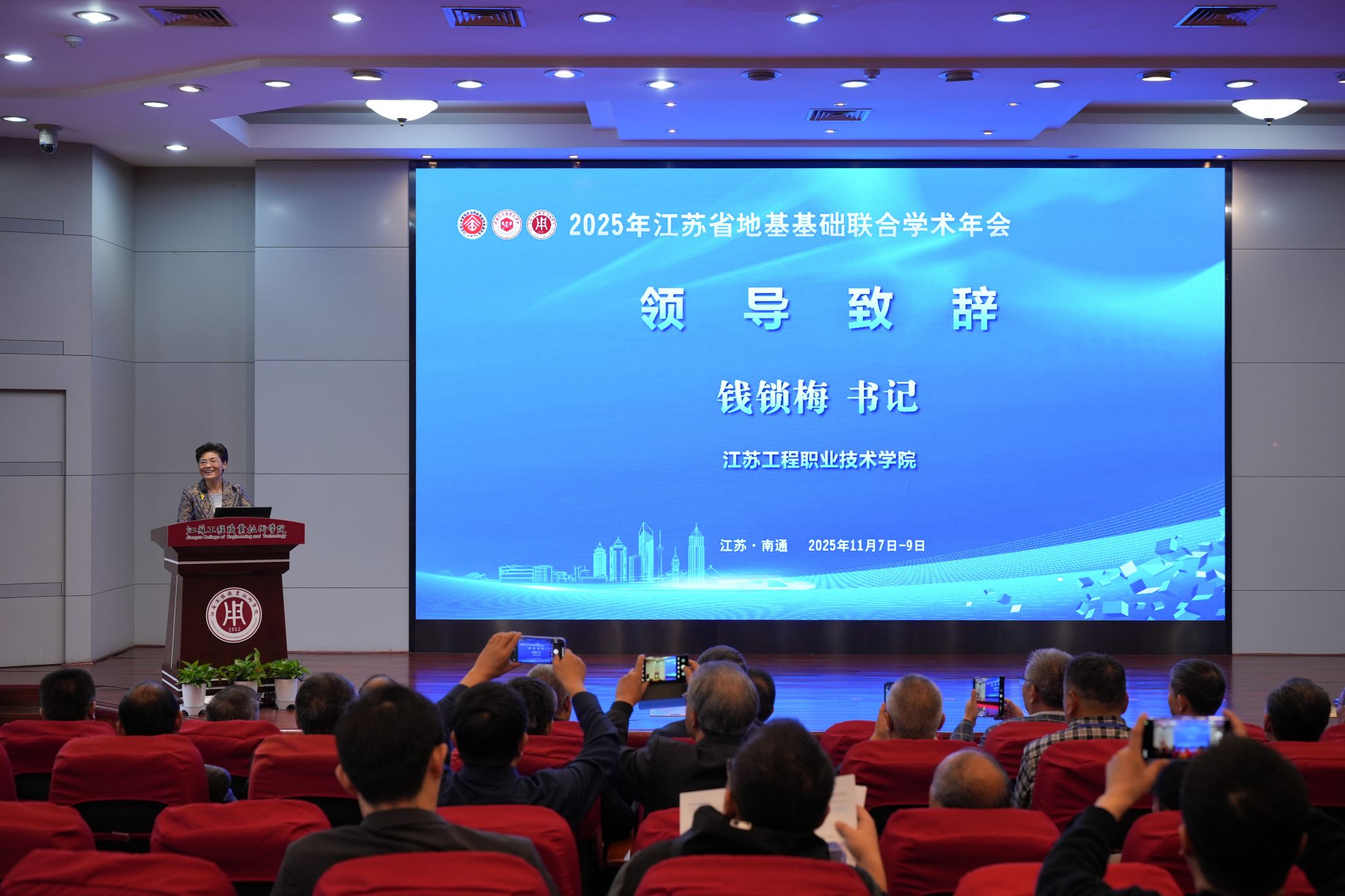钱锁梅代表学校向与会专家表示热烈欢迎。她在讲话中指出,江苏省是建筑业大省,地基基础工程是建筑安全的生命线,造价占比高、技术创新强、吸引就业多,将是“十五五”期间建筑产业提质升级的重点变革方向,这对学校的人才培养提出了新的更高的要求。我校愿以本次年会为契机,构建“政行企校”四方合作桥梁,共同为江苏建筑业高质量发展注入蓬勃动力。