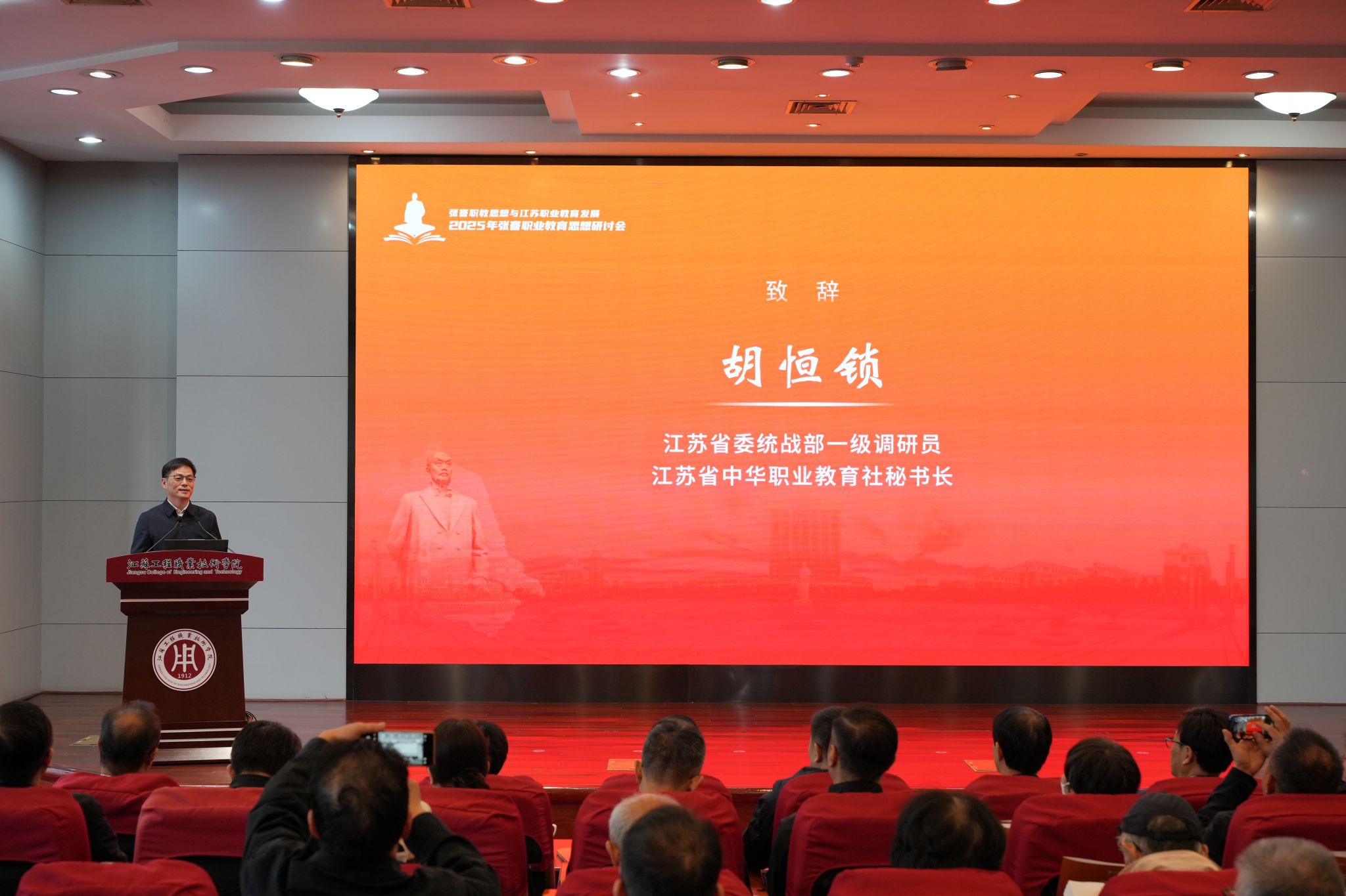 11月12日,由江苏省中华职业教育社、南通市委统战部、张謇研究中心(南通)主办,我校与南通市中华职业教育社承办的“张謇职教思想与江苏职业教育”2025年度张謇职教思想研讨会在我校隆重召开。第十四届全国政协常委、民盟中央副主席、欧美同学会(中国留学人员联谊会)副会长,自然资源部原副部长、江苏省人民政府原副省长曹卫星,中共南通市委常委、统战部部长王小红,江苏省委统战部一级调研员、江苏省中华职业教育社秘书长胡恒锁等各级领导出席开幕式并讲话。开幕式由我校党委书记钱锁梅主持。