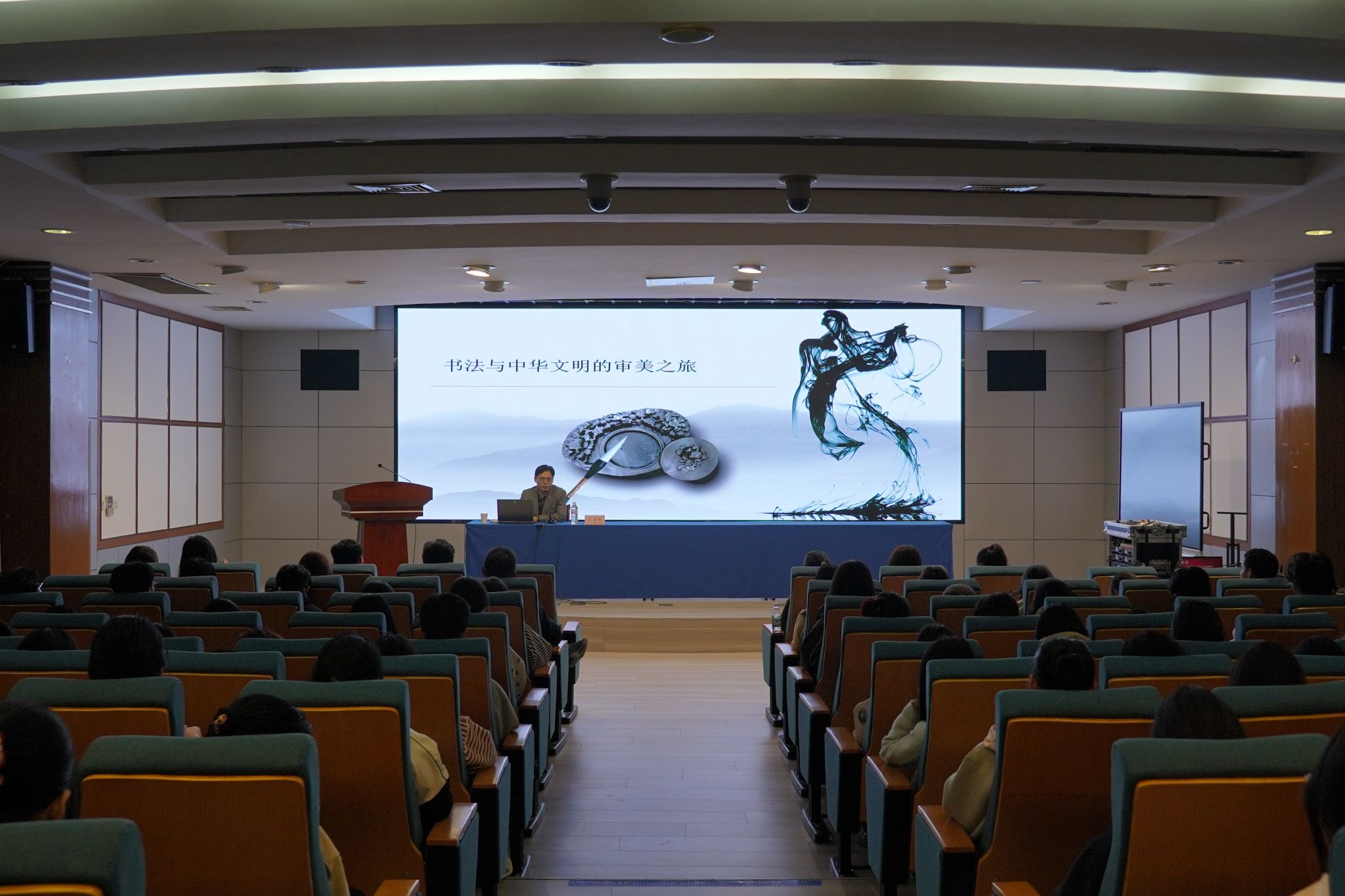 本次活动特邀一级美术师,第七届中国书协理事、行书委员会委员,第四届江苏省书协副主席、秘书长王卫军作题为《书法与中华文明的审美之旅》专题宣讲。他从汉字书体的演变历程、历代书法名家的风骨轶事,以及《兰亭序》《黄州寒食帖》等经典碑帖的鉴赏分析三个维度,系统梳理了中国书法的历史脉络与艺术特质,生动阐释了书法作为中华文明瑰宝的独特魅力。与会学生纷纷表示受益匪浅,认识到书法艺术所倡导的精益求精、守正创新和审美追求,与职业教育所倡导的工匠精神内在相通、高度契合。大家表示,将以此次宣讲为起点,主动走近书法,用心感悟文字之美,在笔墨浸润中提升审美素养,在赓续文脉中坚定文化自信,努力成长为既具专业技能又富人文素养的新时代高素质技能人才。