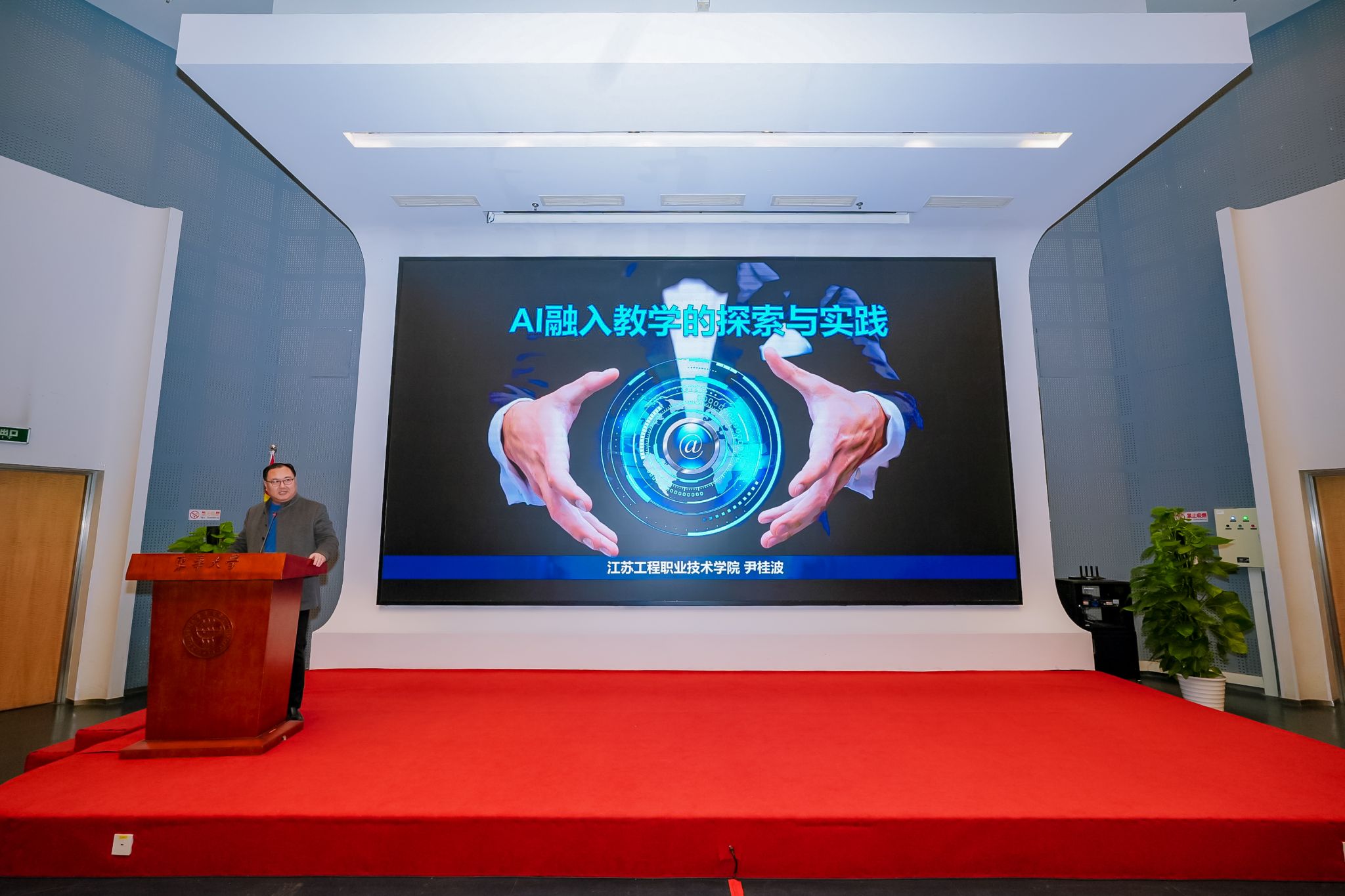 赛场之上,是学子们智慧碰撞的激烈角逐;赛场之外,则是教育工作者们思想交融的深度研讨。大赛同期举办了专题研讨会,聚焦于纺织服装教育的前沿发展与改革路径。我校副校长尹桂波教授应邀出席并作了题为《AI融入教学的探索与实践》的主旨发言。尹桂波在发言中详细介绍了我校在人工智能与教育教学深度融合方面的前瞻性思考、具体实践案例与阶段性成果,分享了如何利用AI技术赋能课堂、优化评价、个性化培养学生创新能力的宝贵经验。他的发言紧扣时代脉搏,内容详实、见解独到,赢得了与会教师与专家的高度评价与热烈反响,进一步提升了我校在同类院校中的影响力与知名度。