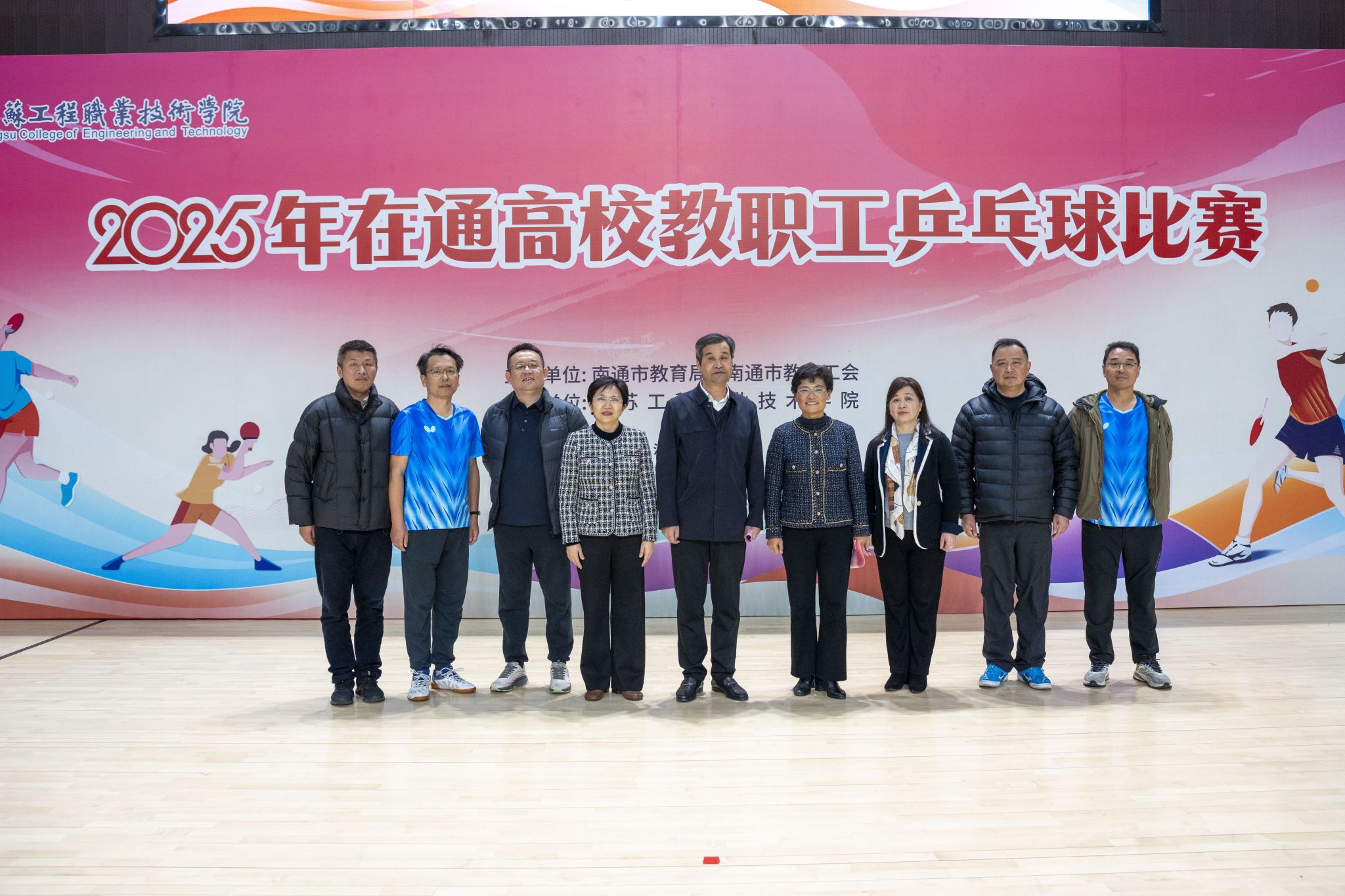 11月28日至29日,由南通市教育局、南通市教育工会主办,我校承办的2025年在通高校教职工乒乓球比赛在学校体育馆举行。来自全市11所高校及市总工会、市教育局机关共13支代表队参加了比赛。