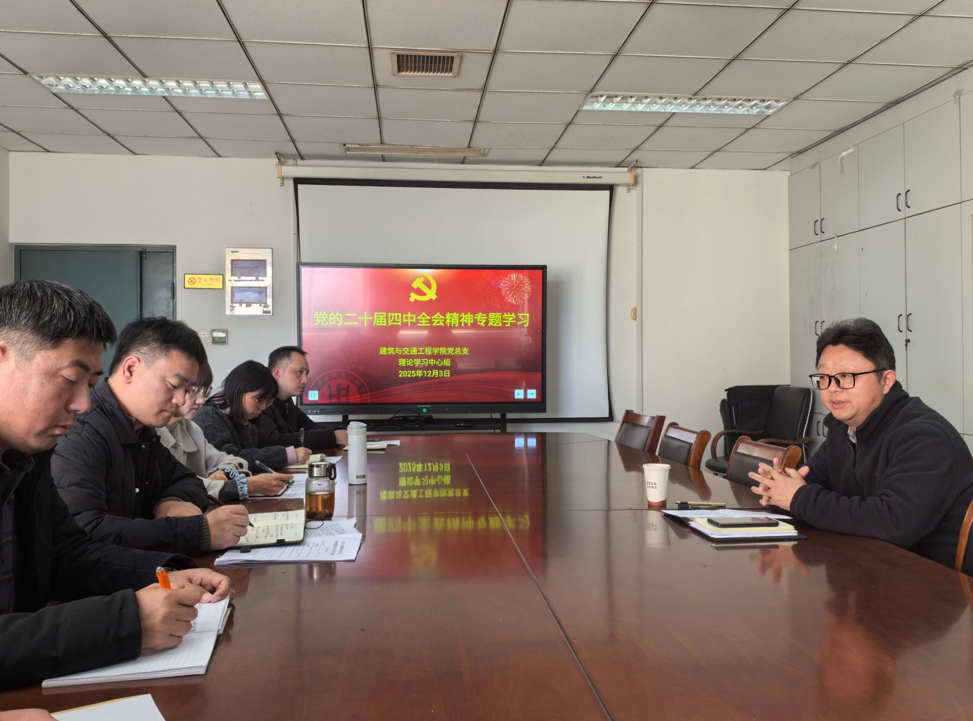 12月3日,建筑与交通工程学院党总支理论学习中心组召开党的二十届四中全会精神专题学习会,校党委委员、副校长孙兵全程巡学旁听。会议由建筑与交通工程学院院长王斯海主持,理论学习中心组全体成员参加了学习会。
