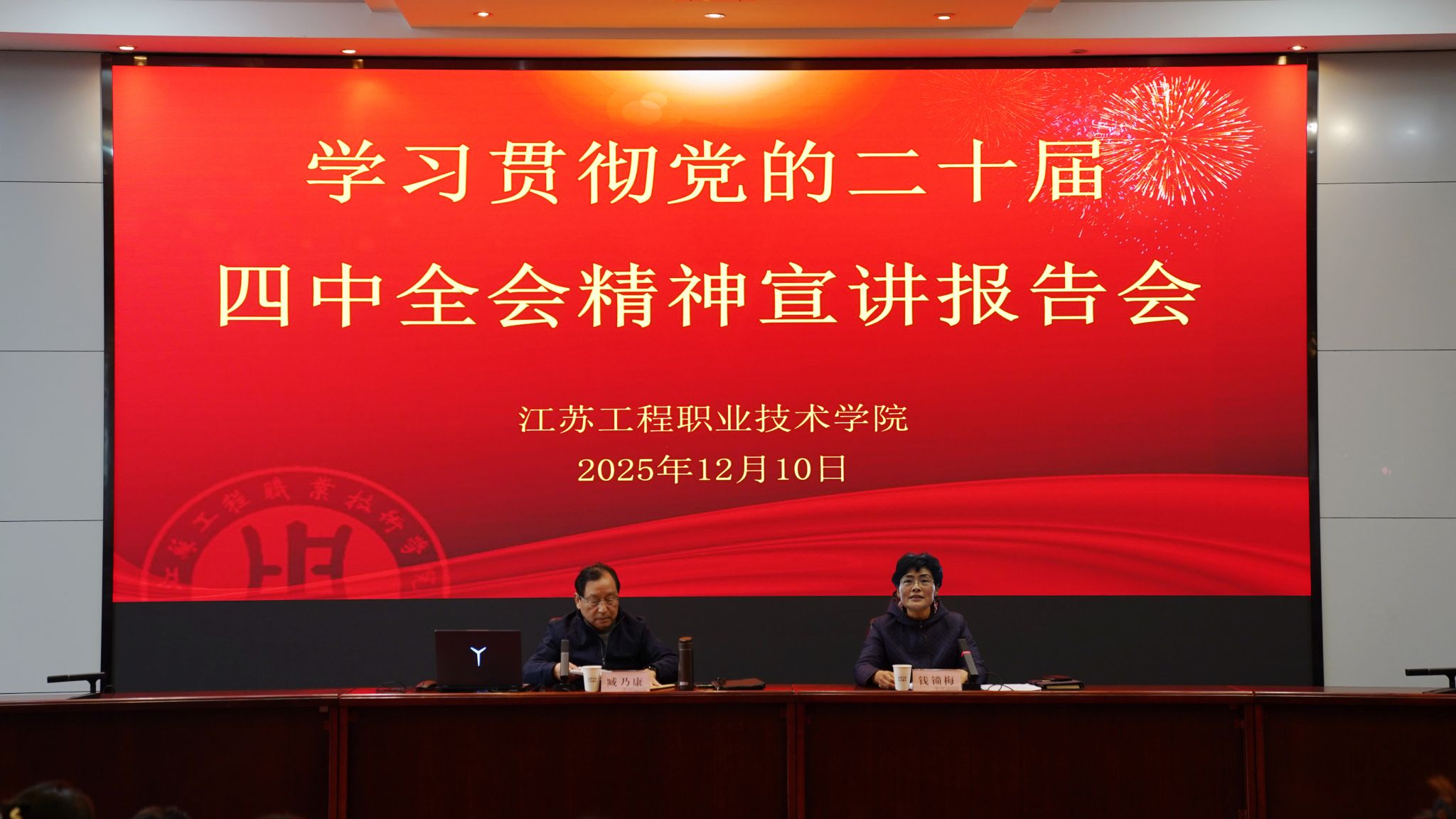 12月10日,学习贯彻党的二十届四中全会精神市委宣讲团在我校宣讲。中共南通市委宣讲团成员、南通大学二级教授、江苏省长江经济带研究院区域政策与法律研究所所长臧乃康教授应邀作“为基本实现社会主义现代化而共同奋斗——学习贯彻党的二十届四中全会精神”专题宣讲报告。校领导、机关党员代表、师生代表等近300人参加学习,校党委书记钱锁梅主持报告会。