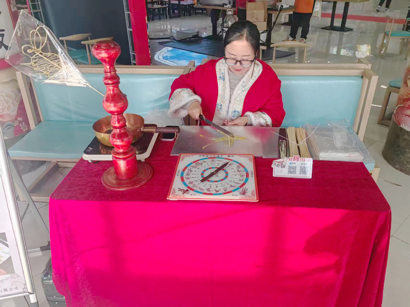 开幕后,两校区食堂变身沉浸式美食文化体验场。四家经营企业展台前人头攒动,香喷喷的非遗糕点、滋滋作响的特色烧烤、晶莹剔透的手工糖葫芦等美食琳琅满目,现场热闹非凡;糖人师傅以勺为笔、以糖为墨,瞬间勾勒出栩栩如生的各色形象;剪纸艺人指尖翻飞,红纸上跃出精妙图案;面塑摊位前,师傅手法娴熟,揉捏出憨态可掬的小动物,编织体验区的长龙队伍则传递着传统技艺的吸引力。巨型蛋糕成为共享喜悦的象征,梨汁、老姜糖水驱散冬日寒凉,校园满是美食与文化交融的烟火气与欢声笑语。