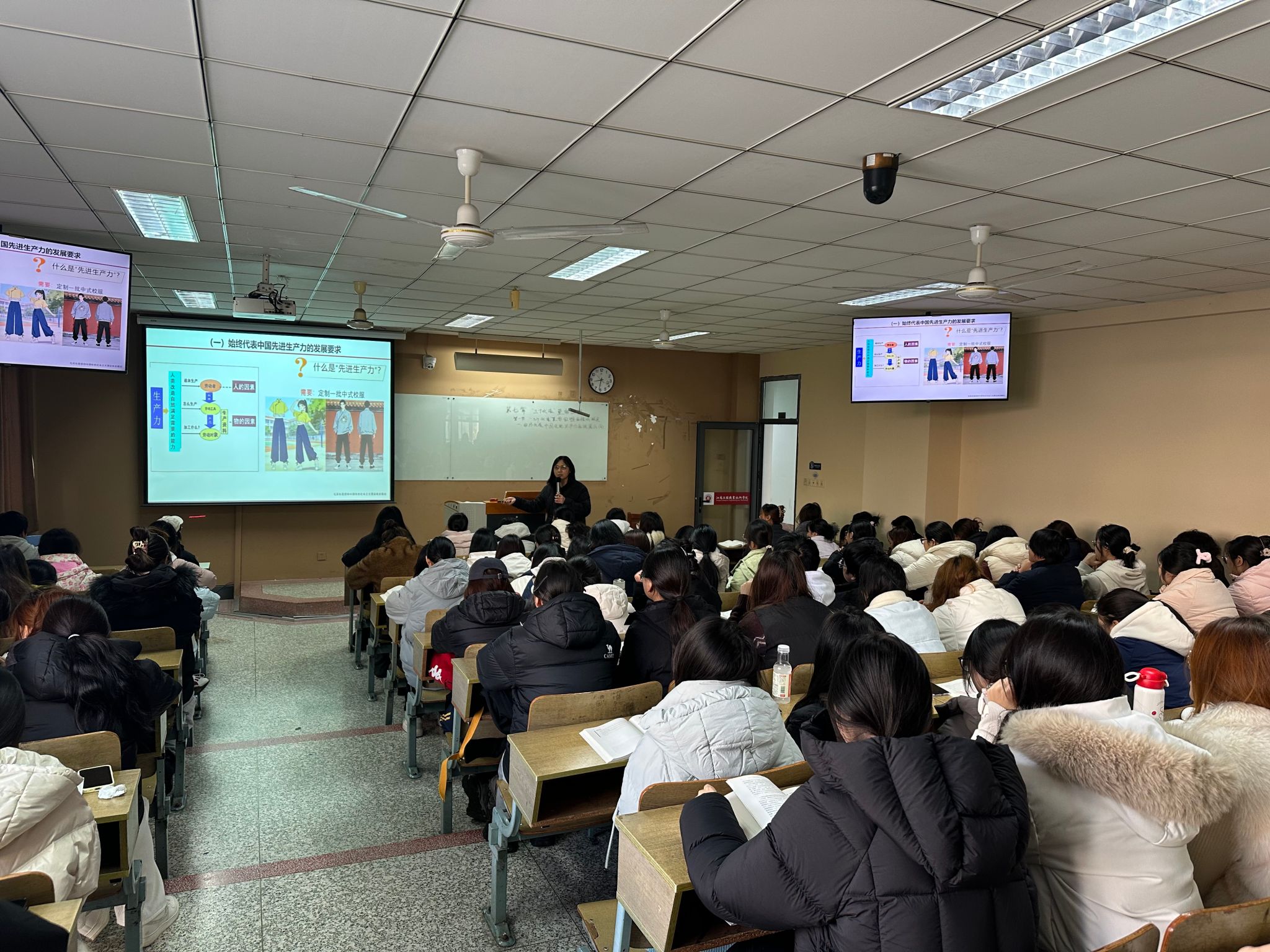 魏银霞老师围绕《“三个代表”重要思想》教学专题,从“三个代表”重要思想的形成条件、“三个代表”重要思想的核心观点等内容开展了教学,重点讲解了中国共产党为什么要始终代表中国先进生产力的发展要求,什么是中国先进生产力的发展要求,中国共产党怎样始终代表中国先进生产力的发展要求三个核心问题。在课堂导入环节,魏老师充分利用金课坊平台开展师生互动,通过线上一问一答,高效地回顾了上次课的主要内容,激发了学生的学习热情。在课堂实施环节,魏老师结合服装专业学生的专业背景和行业特点,通过设计问题链,结合大生纱厂生产力的变迁案例,层层递进,由浅入深地开展教学,通过思专融合,贴近了学生实际,增强了教学的感染力。在课堂总结环节,魏老师布置了企业调研实践任务,引导学生通过比较不同时代条件下,行业企业在党的创新理论指导下提高生产力水平的创新实践,增强了教学的针对性和实效性。