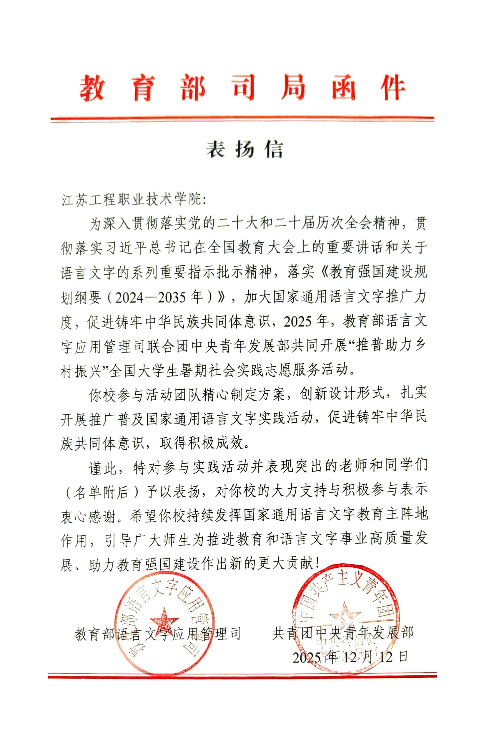 此次荣誉既是对团队实践成果的充分肯定,更是对我校专业教育与社会实践深度融合的有力印证。未来,我校将持续聚焦民族地区发展需求,深化“普通话+专业赋能”的实践模式,推动语言推广与文化传承、产业发展、民生改善深度融合,让普通话成为连接民族文化与外界的桥梁,让青年学子在服务乡村振兴的火热实践中锤炼本领、增长才干,为铸牢中华民族共同体意识、夯实共同富裕语言基础贡献青春力量,书写新时代高校服务国家战略的崭新篇章。(经济管理学院 李慧娴/文图 团委 张禧嘉/推荐 张禧嘉/审核)