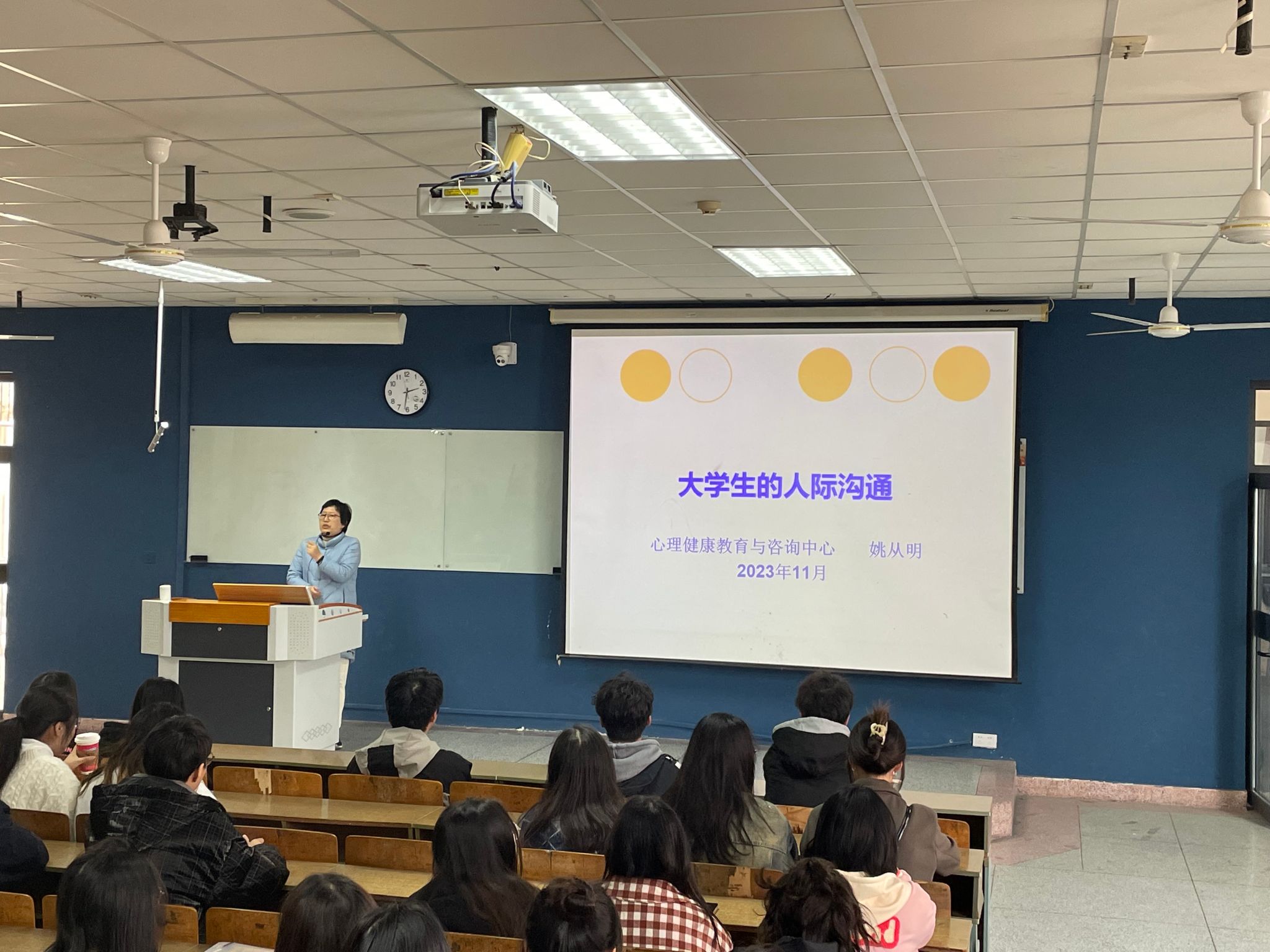 11月29日,纺织服装学院丝缕成长工作室在崇謇楼101举办第三期心理主题系列讲座。本次讲座的主题为“大学生人际关系处理技巧”,特邀校心理健康中心老师姚从明主讲,2022、 2023级心理委员、朋辈辅导员约130人参加了活动。