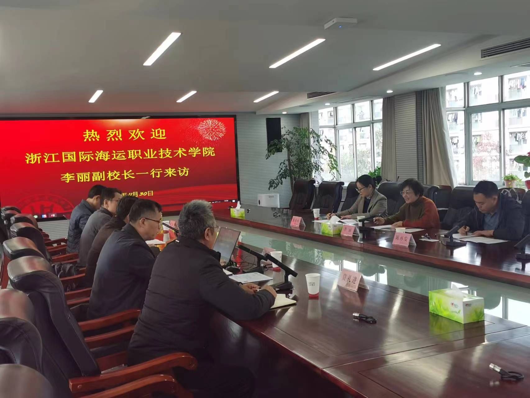 11月30日下午,浙江国际海运职业技术学院副校长李丽一行来我校交流学习。党委委员、副校长郭江峰,纪委副书记、纪委办(巡察办)主任郭智君,继续教育学院院长江荣华,航空与交通工程学院党总支书记曹钰,院长贲礼进,机务教研室主任纪鹏飞在行政楼三楼会议室接待了来宾并开展研讨。