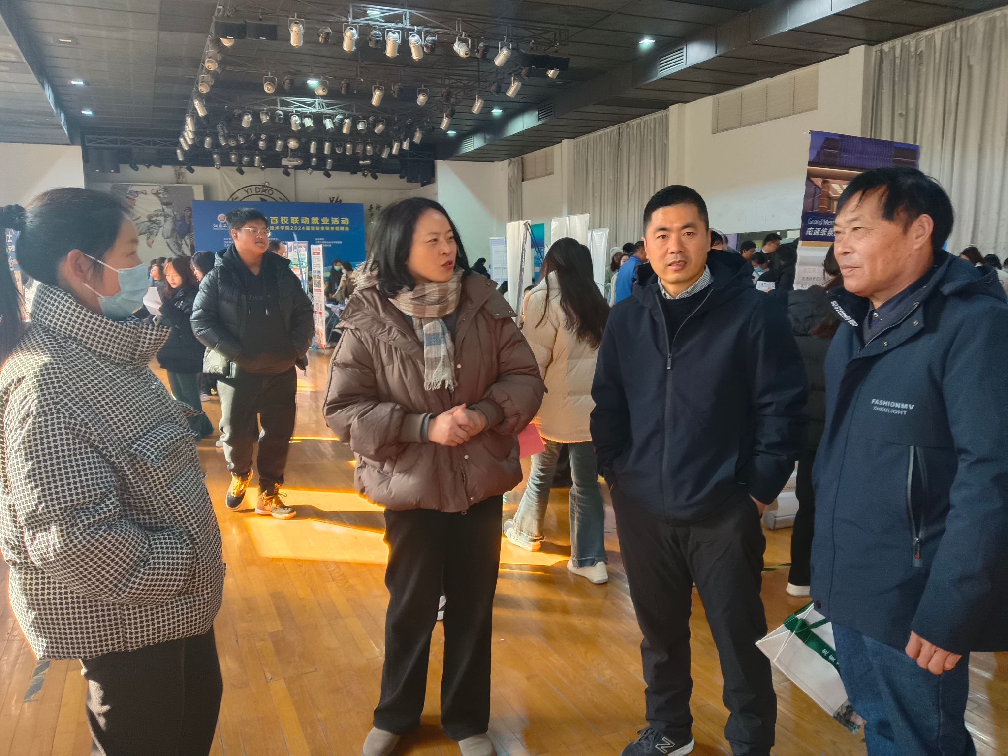 12月2日,纺织服装学院家长分校邀请部分22级学生家长走进学校秋冬校园招聘会,开展学生就业交流活动。学院党总支书记夏爱萍、副书记刘桂阳、辅导员王艳一起参加了此次活动。