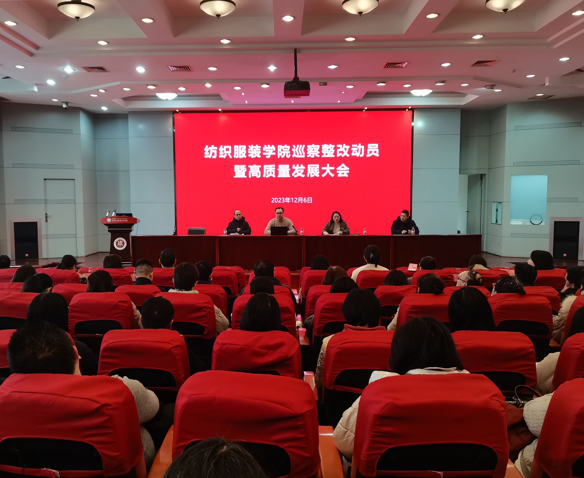 12月6日下午,纺织服装学院在致知楼320报告厅召开了巡察整改动员暨高质量发展大会。纺织服装学院全体教职工参加了大会,纺织服装学院院长尹桂波、副院长魏振乾、副书记刘桂阳出席大会,会议由纺织服装学院党总支书记夏爱萍主持。