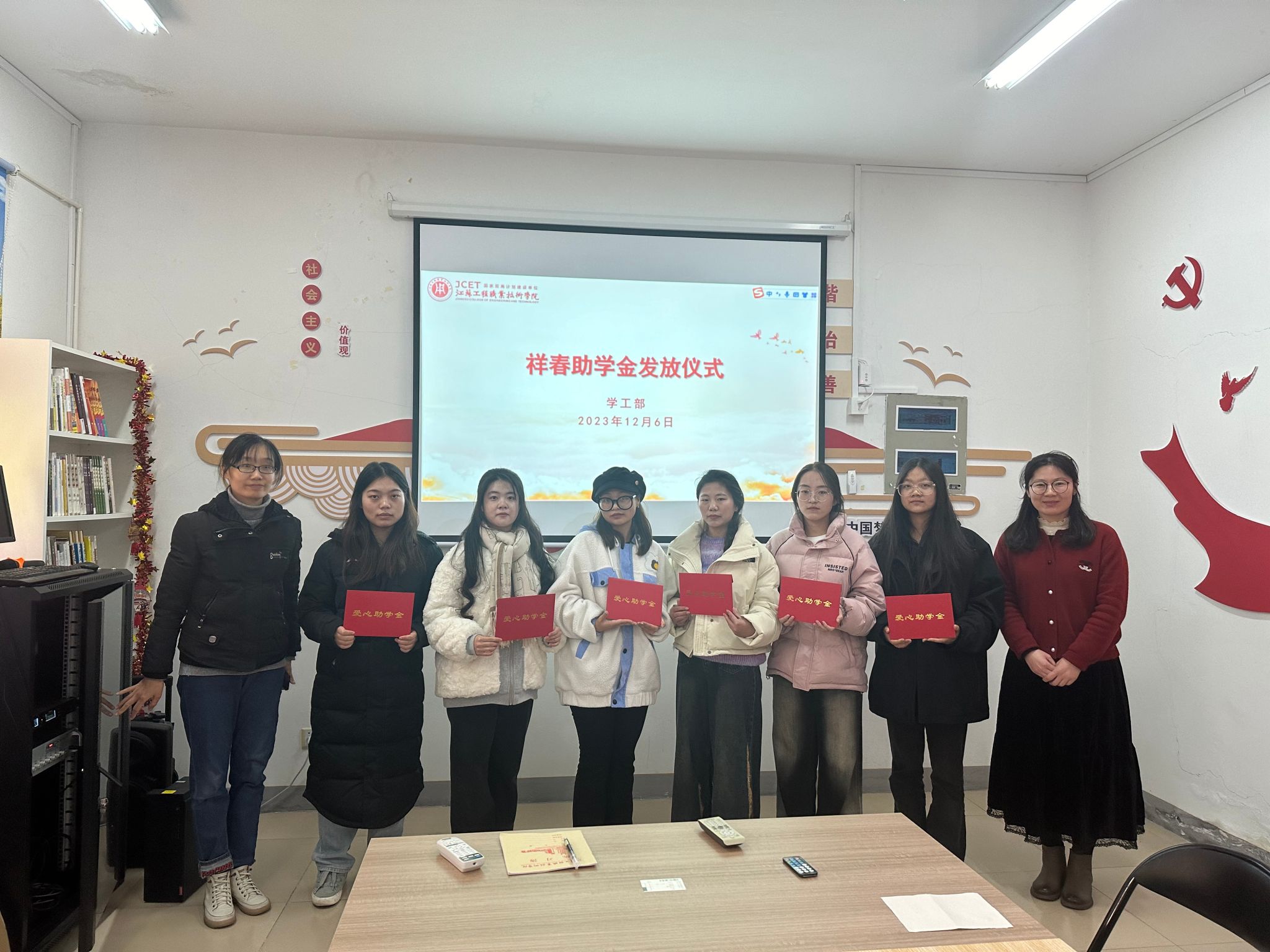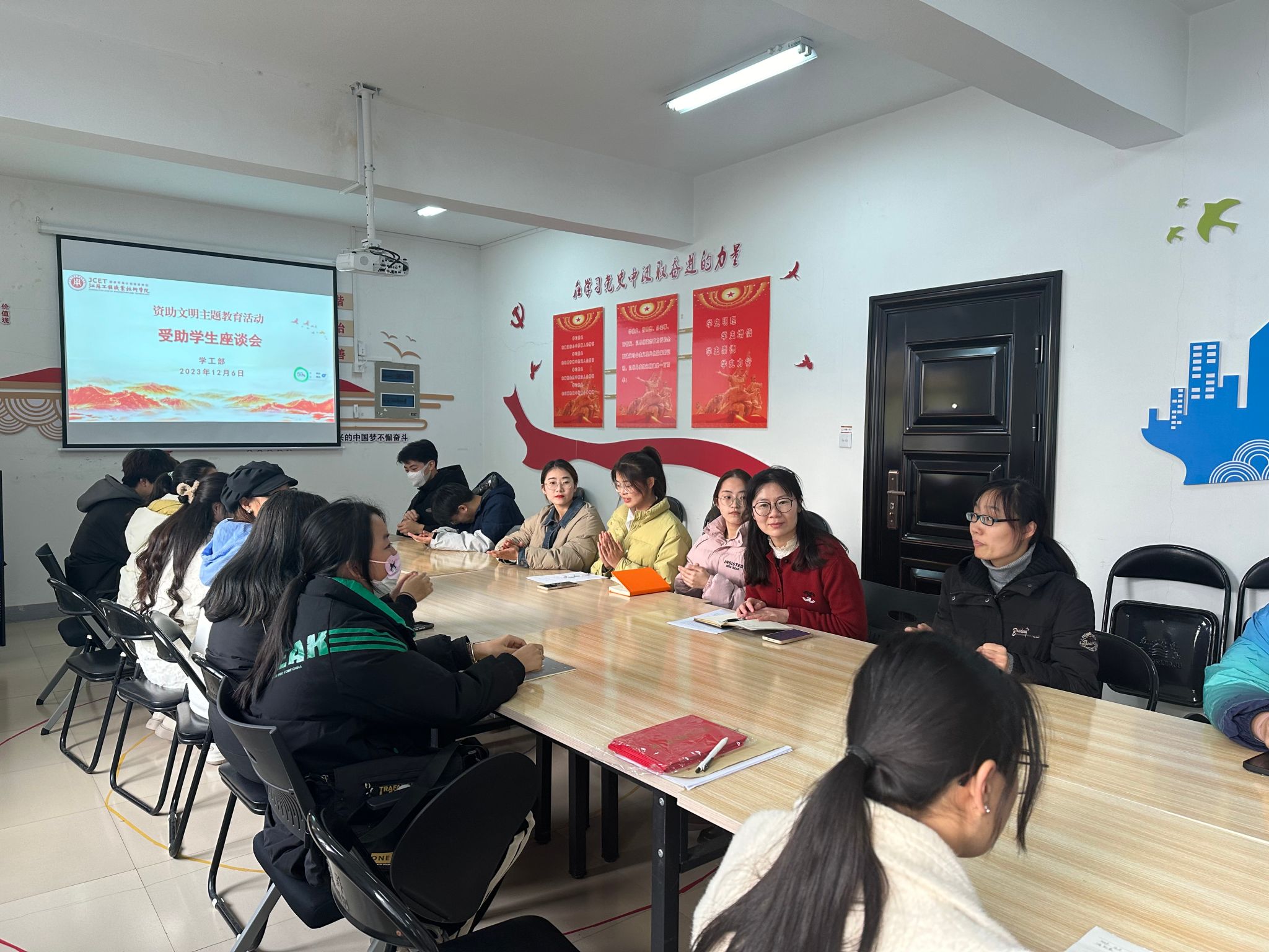 12月6日,学工处学生资助管理中心在崇川学生社区活动中心红色家园活动室召开学生座谈会暨“祥春助学金”发放仪式。学工处副处长朱平、学生代表参加座谈会。