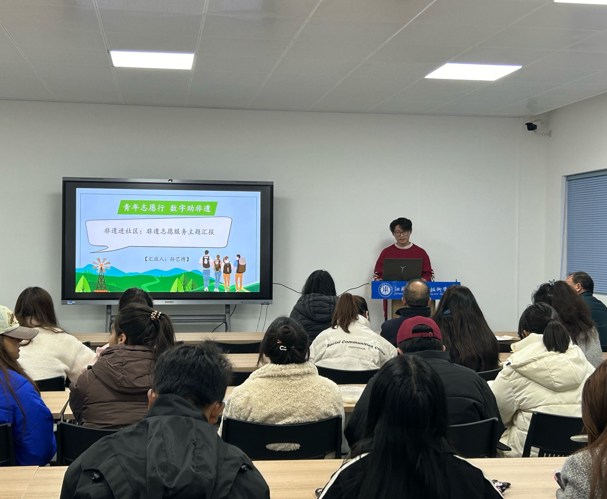 制迎新香囊。学院“青年志愿行 数字助非遗”实践团队成员汇报了实践寻访成果,并且带领大家将寓意着吉祥如意、事事顺遂的各种香料一针一线缝入香囊,表达对民族团结、未来可期的美好祝愿。