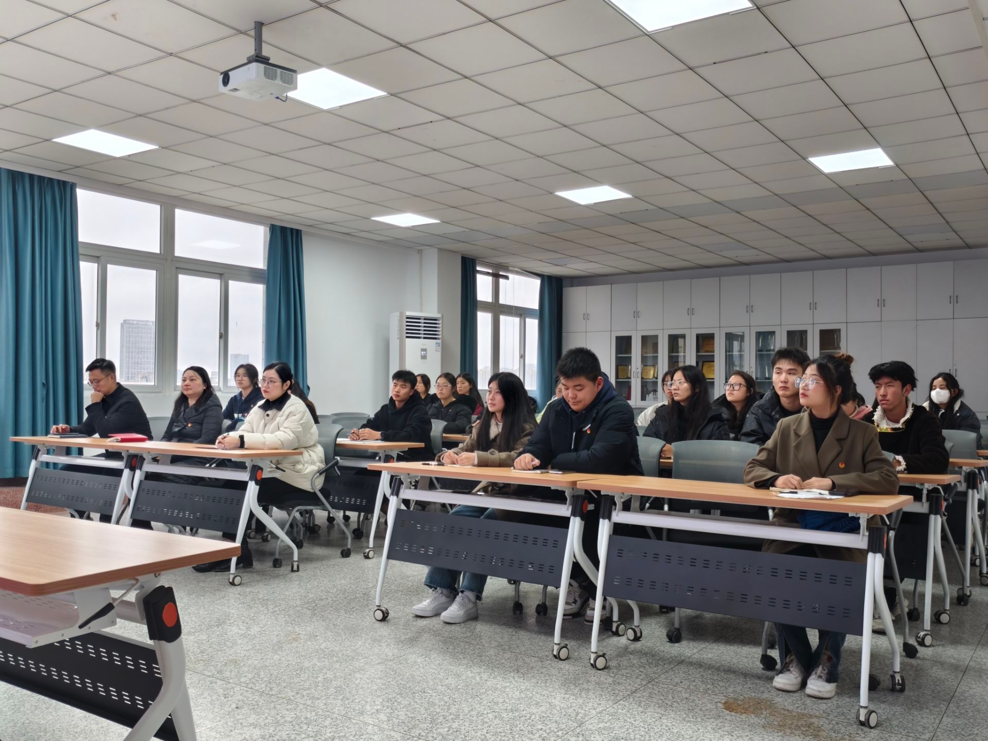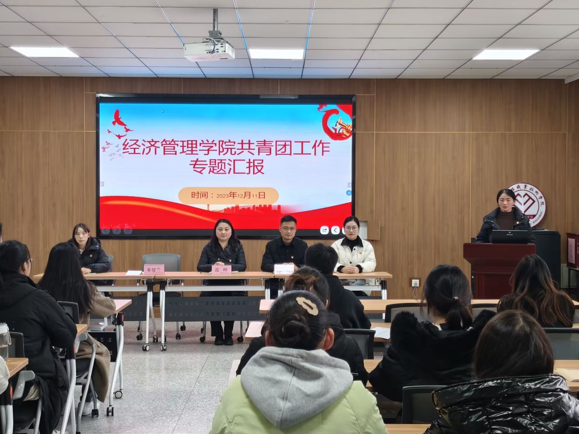 为进一步加强学院党总支对共青团工作的领导,充分发挥党建带团建工作的优势,全面掌握学院团学组织工作和青年学生的思想动态,12月11日,经济管理学院在致知楼604会议室举行了共青团工作专题汇报会。经济管理学院党总支副书记范晔、副书记王谦、团总支书记朱建兰、副书记李慧娴、辅导员李成敏及学生分会主席团成员、各部门代表参加,会议由李慧娴主持。