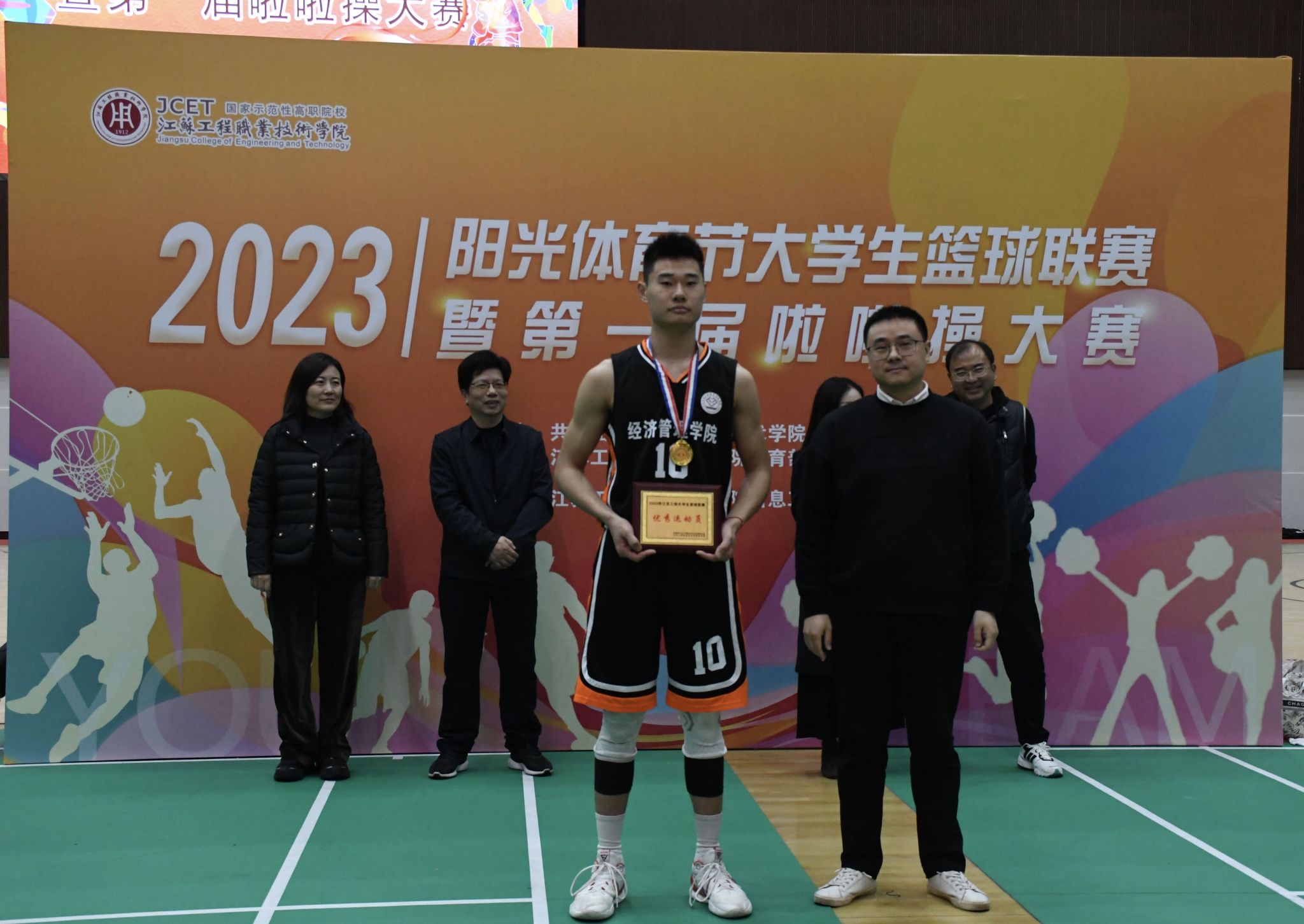 12月10日,由校团委、体育部主办,信息工程学院关工委、团总支、学生分会承办的2023年江苏工院大学生篮球联赛于崇川校区体育馆落下帷幕。校团委书记徐磊、体育部主任吴春成、信息工程学院党总支书记朱建泉、校团委副书记沈雯、部分学生家长代表到现场观看决赛并颁奖。