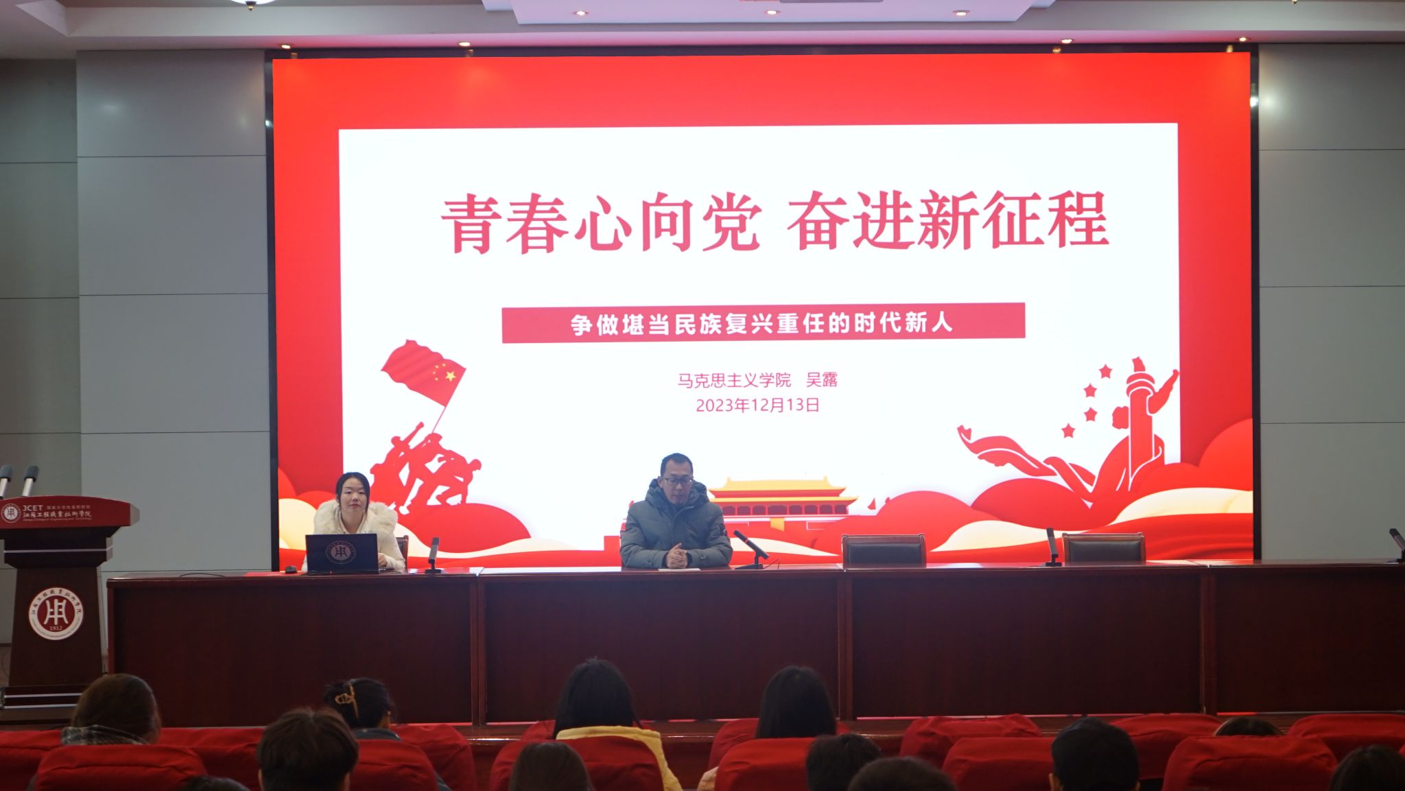 12月13日下午,艺术设计学院邀请马克思主义学院吴露老师在致知楼报告厅为全体23级团员讲授了一堂内容充实、活泼生动的理想信念主题党课。艺术设计学院党总支副书记赵喜恒、团总支书记张晓霞、团总支副书记王皓澄出席。赵喜恒主持党课。