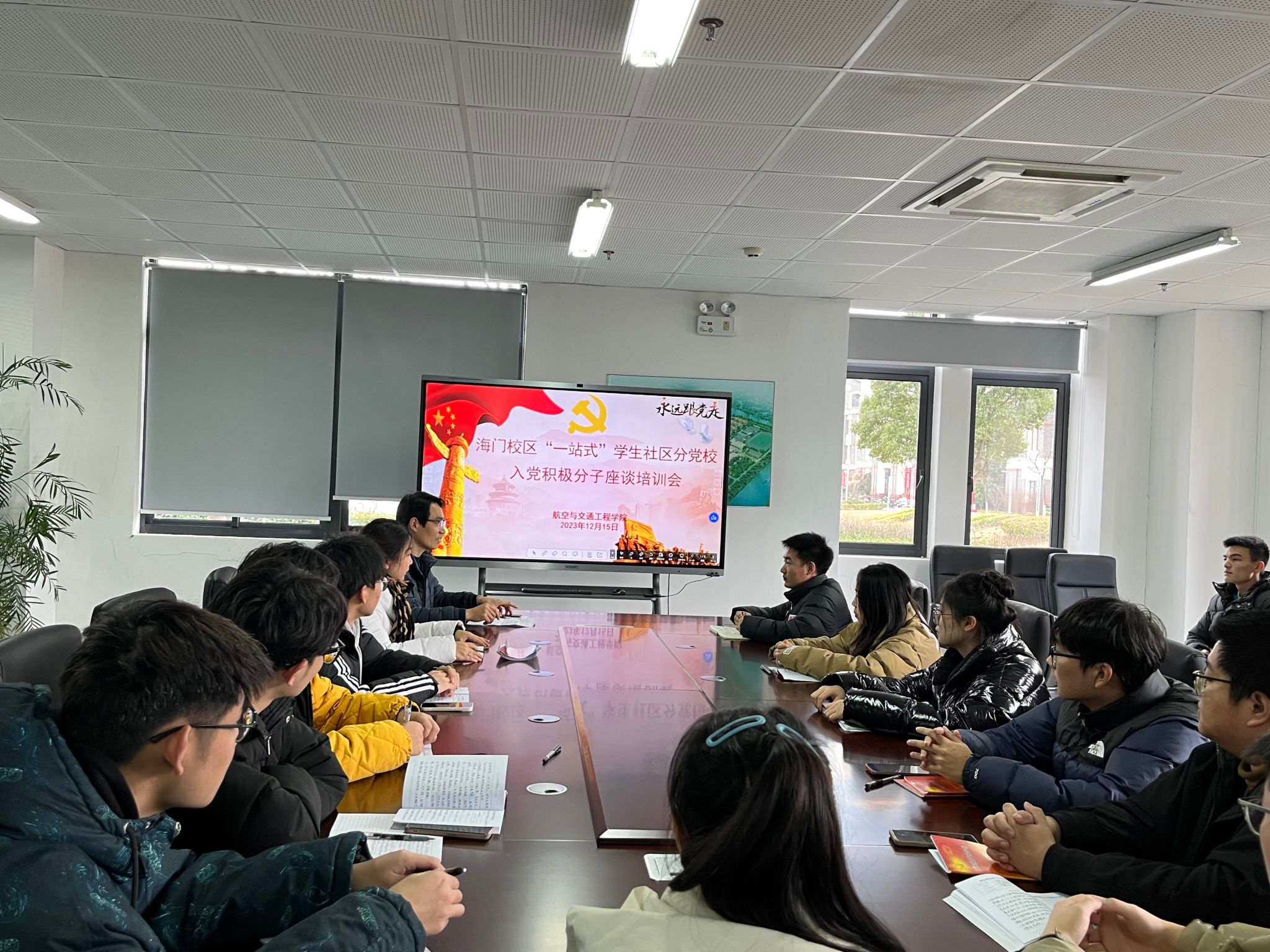 12月15日上午,航空与交通工程学院在海门校区一站式学生社区举办青年党员和入党积极分子座谈培训会。学院党总支书记曹钰和30名青年学生党员、入党积极分子参加了此次座谈培训会。会议由学院党务秘书孔文利主持。