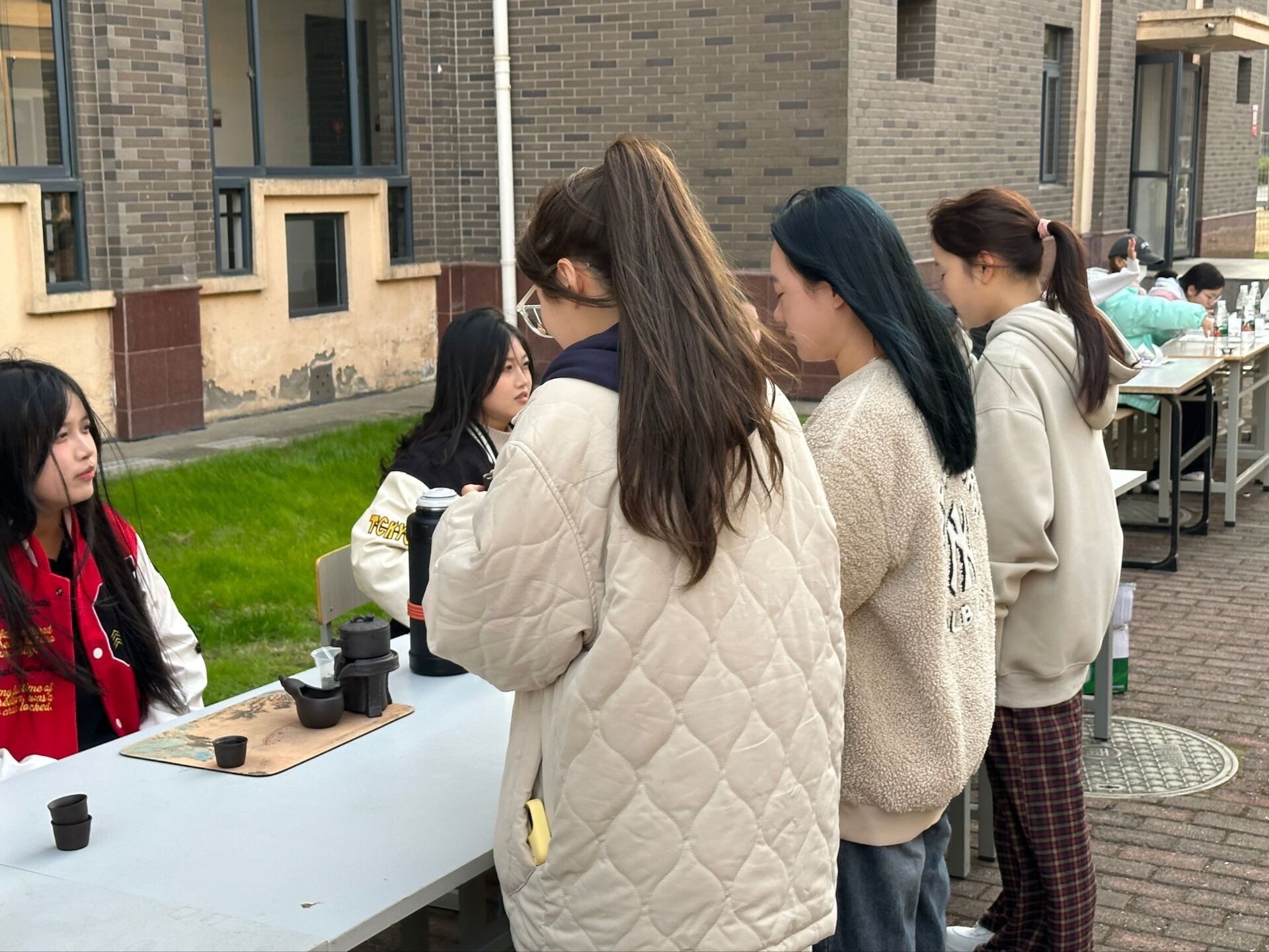 活动邀请了6名学生茶艺师示范如何制茶、品茶、鉴茶,带领同学们一同感知中华民族的茶道精神、茶德修养与茶礼风尚。活动还邀请了校书法协会的成员现场指导如何握笔、下笔、停笔,与同学们一起感受中华书法的博大精深,宣纸上倡导讲文明、守礼仪的经典词句也在提醒着众人注重自身的道德文化涵养。与此同时,社区活动功能室也同步开展了“抖出校园新风尚,营造文明新气象”校园文明微视频观影活动,展示的8份视频作品全是由学院学生自主创作。观影结束后,22建筑工程一、二班唐海同学作为优秀视频创作者代表分享了自己的创作心得与体会,身为退伍军人的他表示希望看到更多的学弟学妹为建设文明校园建设、建设美好国家贡献出自己应有的力量。