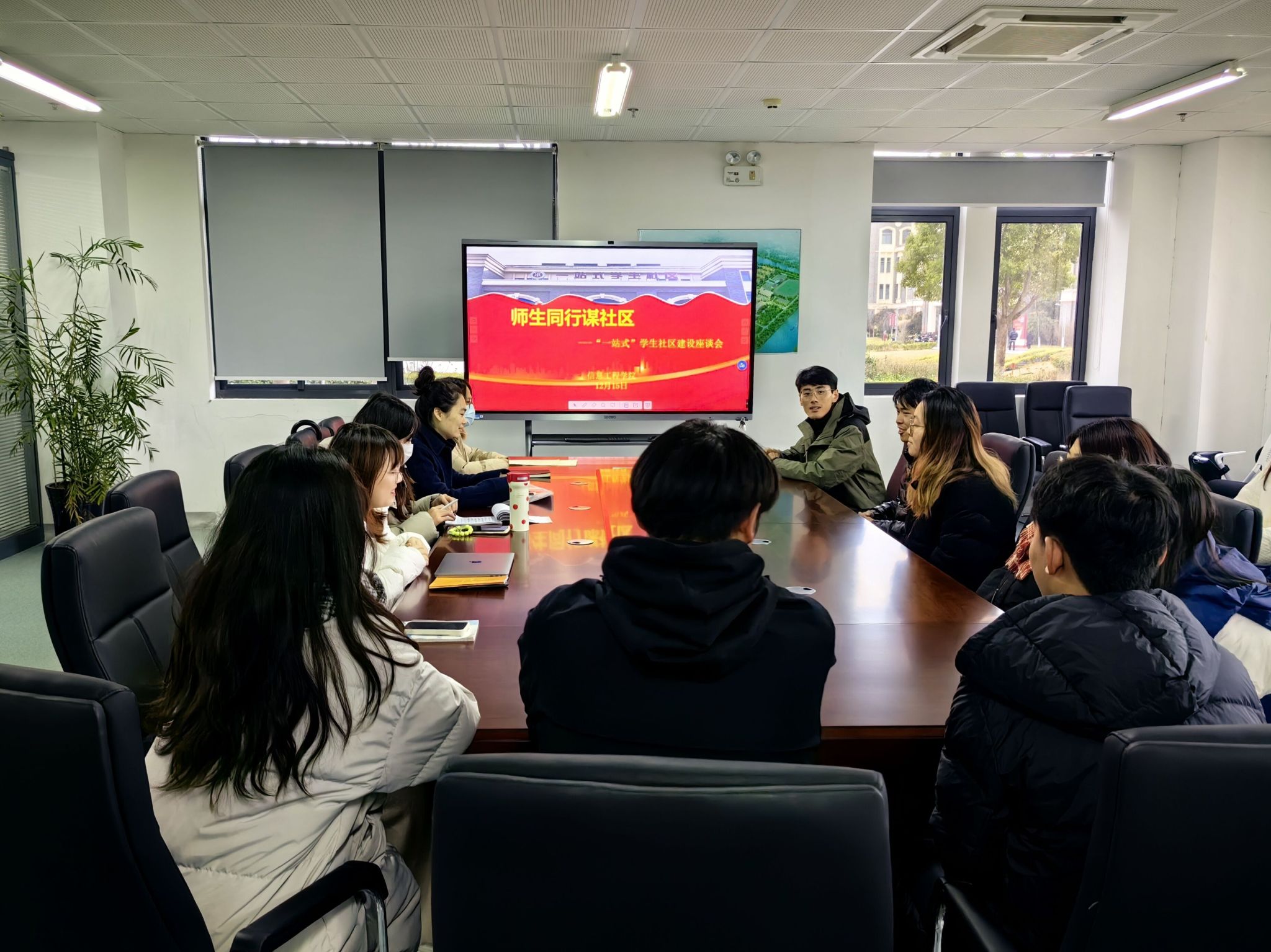 为深化“一站式”学生社区建设,拉近师生距离,倾听青年声音,12月15日,信息工程学院在海门校区学生社区会议室开展师生同行谋社区——“一站式”学生社区建设座谈会,信息工程学院党总支副书记高飞、学院全体辅导员老师和部分学生代表参加。