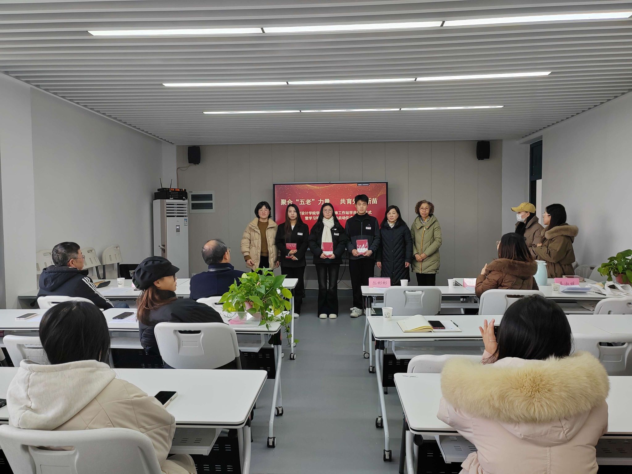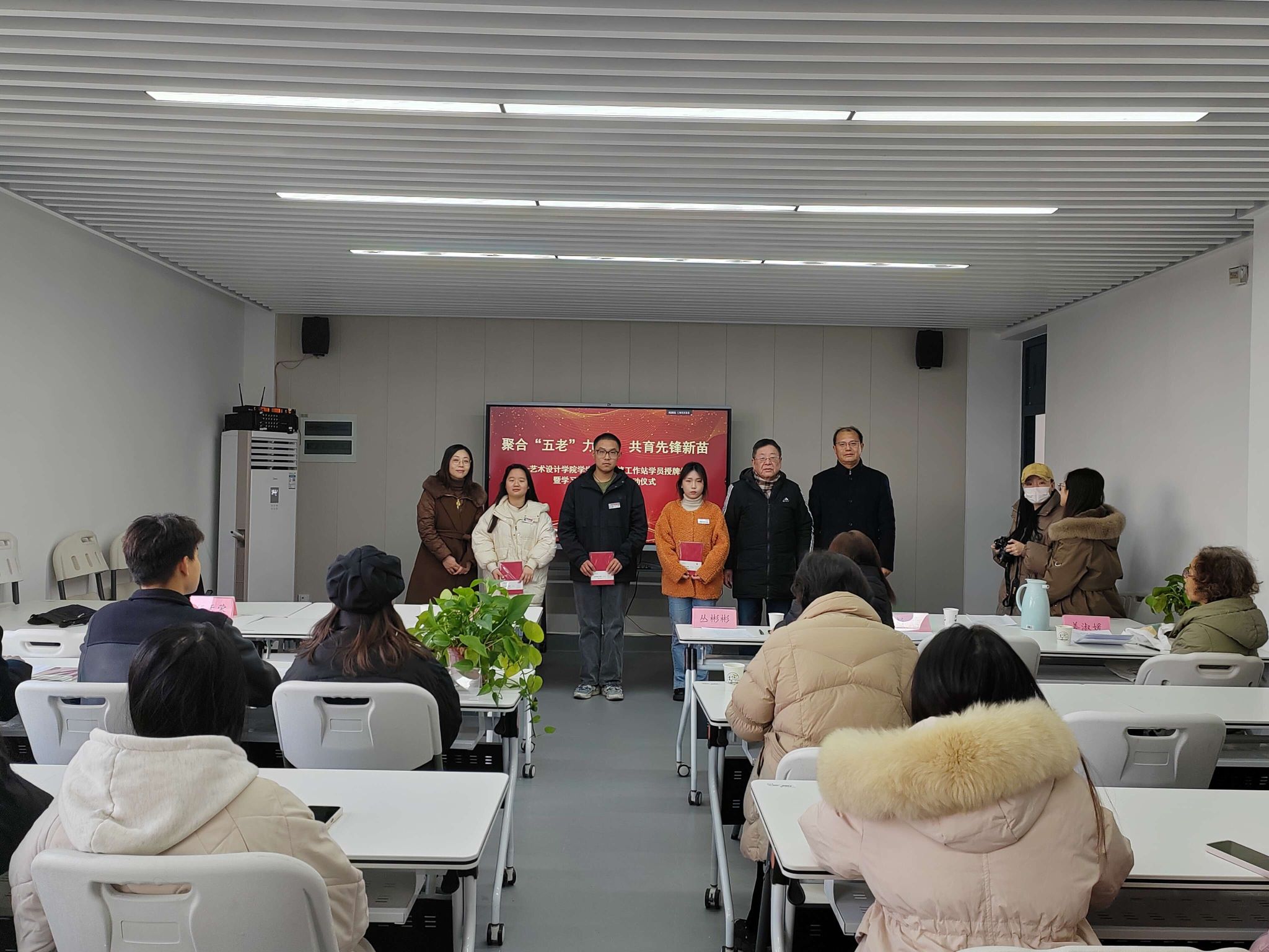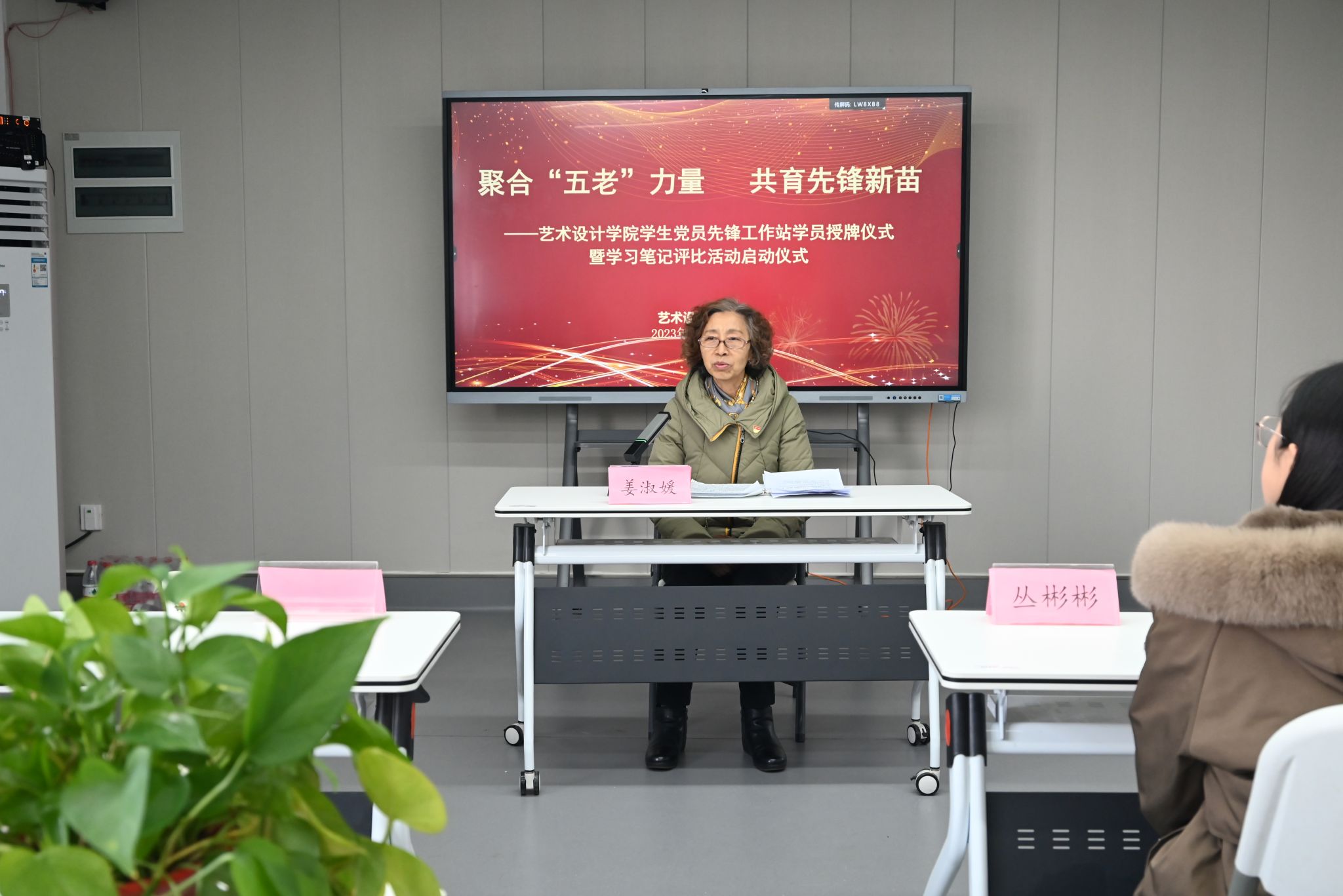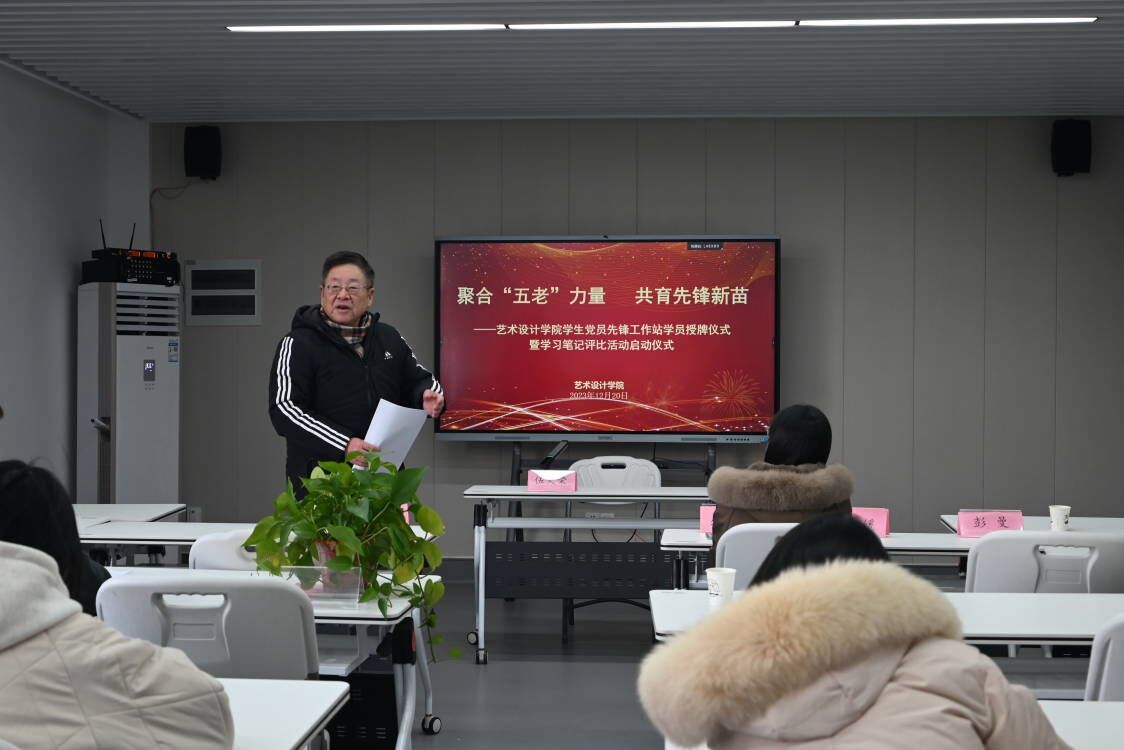 12月20日下午,艺术设计学院在有恒楼222会议室举行了学生党员先锋工作站学员授牌仪式暨学习笔记评比活动启动仪式。校党委委员、副校长、校关工委副主任丛彬彬,校关工委常务副主任季跃东,学院党总支书记、关工委主任彭曼,学院关工委常务副主任姜淑媛,学院团总支书记、关工委秘书长张晓霞、关工委副秘书长伍天荣,还有先锋工作站学生代表共同参加活动。活动由学生党员先锋工作站指导老师高扬主持。