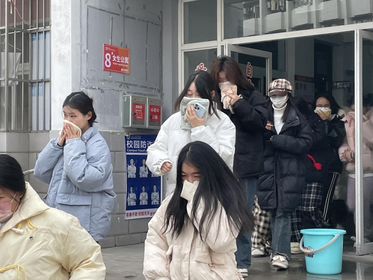 讲座结束后,又于颐生社区开展消防演习。演练开始前,朱晓虎对现场工作人员、学生引导员进行疏散培训。演练正式开始后,赵喜恒、刘桂阳发出指令,宿管阿姨吹响警示哨,学生启动疏散流程。楼内各疏散口引导员迅速就位,引导学生使用湿毛巾捂住口鼻,弯腰低姿态沿安全出口所示方向有序完成疏散。经演练,学生基本可以在短时间内完成疏散,未出现学生困在出口处或人员聚集踩踏等情况。