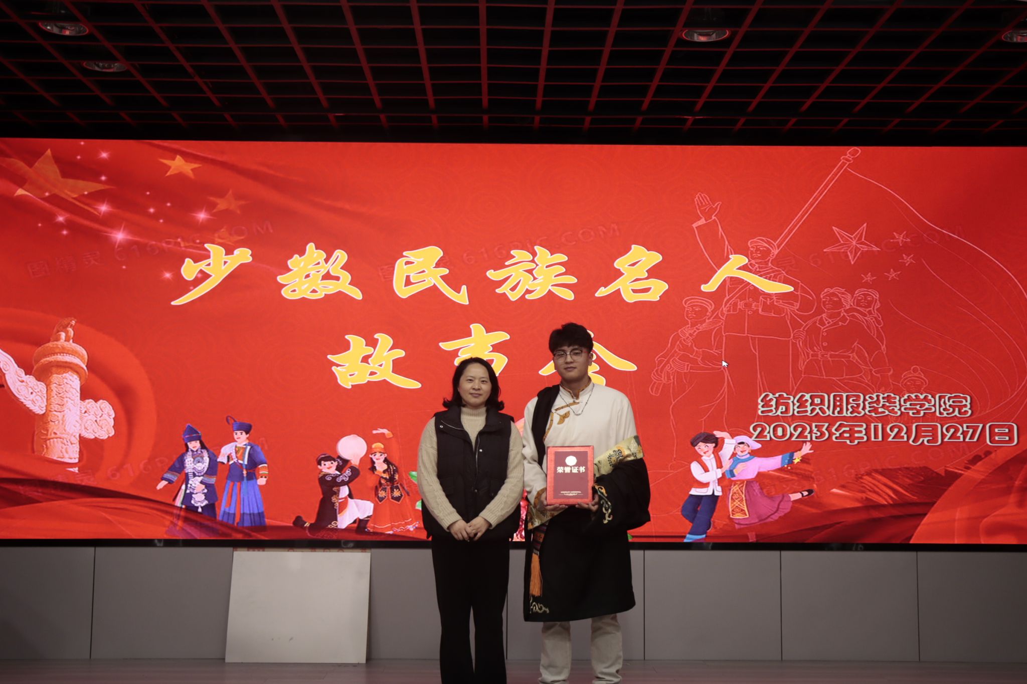 12月27日晚,纺织服装学院在强毅楼12楼演播厅举办了一场别开生面的“少数民族名人故事分享会”。活动以少数民族“名人事迹”为主题。比赛邀请了新疆内派教师艾比不拉·塞买提、郭宏、学院党总支副书记刘桂阳、辅导员孟诗凯、王艳担任评委,学院党总支书记夏爱萍出席活动。