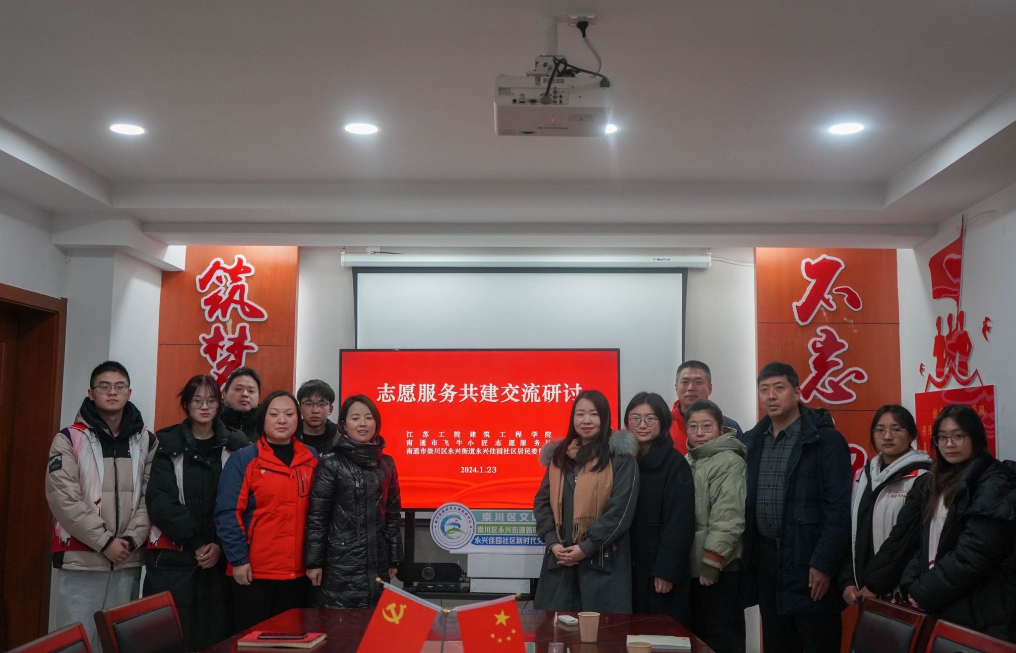 1月23日上午,建筑工程学院党总支组织青年志愿团代表前往崇川区永兴街道永兴佳园社区,与永兴佳园社区、南通市飞牛小匠志愿服务社开展三方“志愿服务共建交流研讨”活动。永兴佳园社区党委书记孙夕红,南通市飞牛小匠志愿服务社社长宗敏、秘书长卢仁兵,建筑工程学院党总支书记白林、党总支副书记吴颖、建工技术党支部书记袁东进、党务秘书孙潇宇等参加了本次活动。