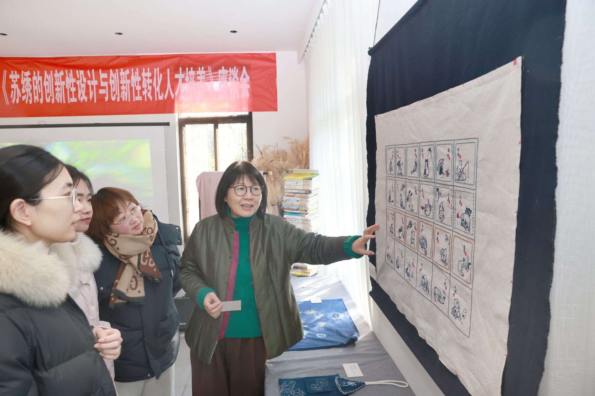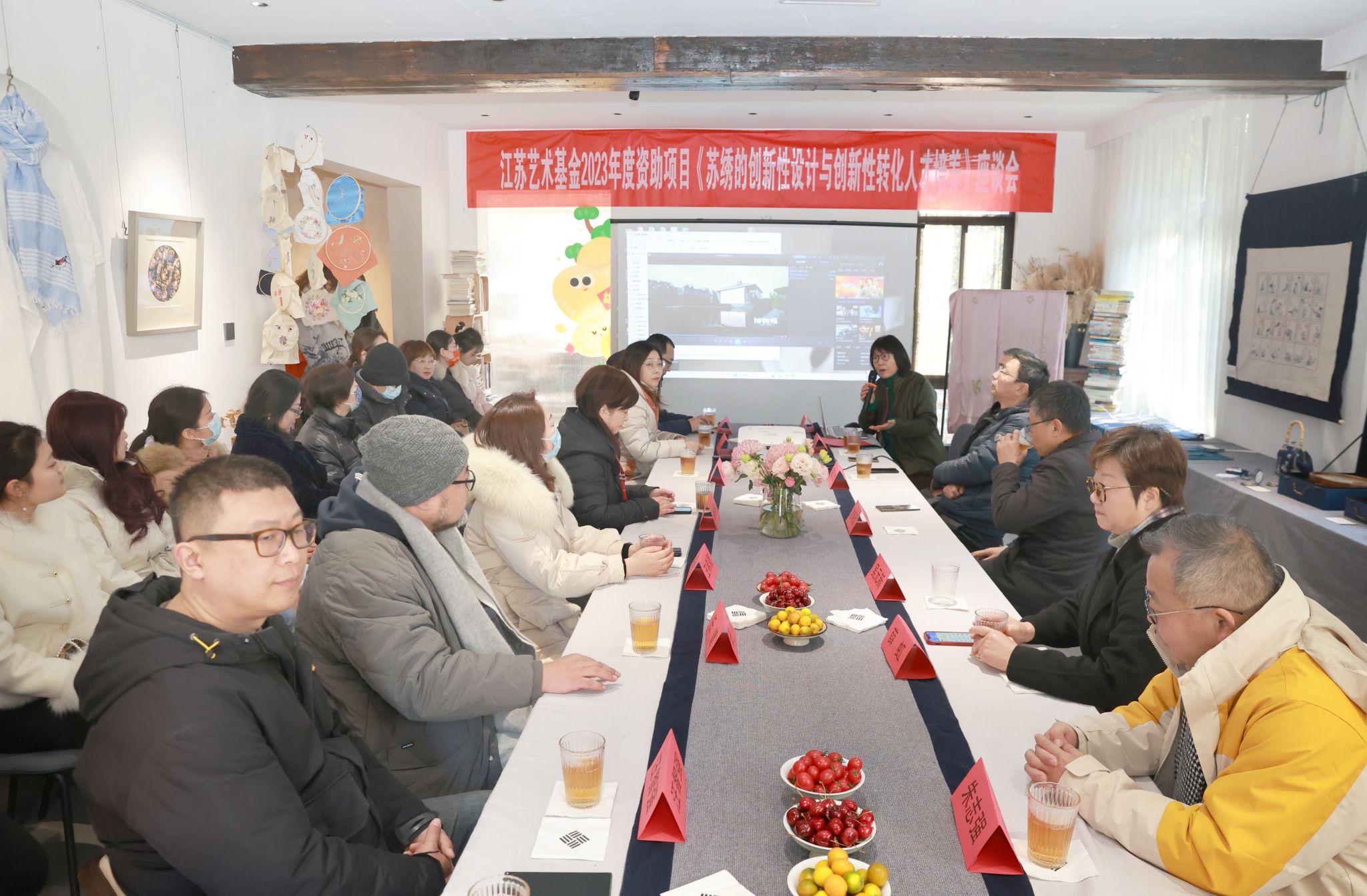1月25日,由江苏艺术基金资助、江苏工程职业技术学院承办的江苏艺术基金2023年艺术人才培养项目《苏绣的创新性设计与创新性转化人才培养》成果汇报展暨项目座谈会在大生众创园一庄非遗空间举行。汇报展邀请南通大学、市文广局、群艺馆等专家莅临指导,校党委委员、副校长丛彬彬,党委委员、宣传部部长王希颖,科研处处长姜生以及艺术设计学院党政领导参加了座谈。