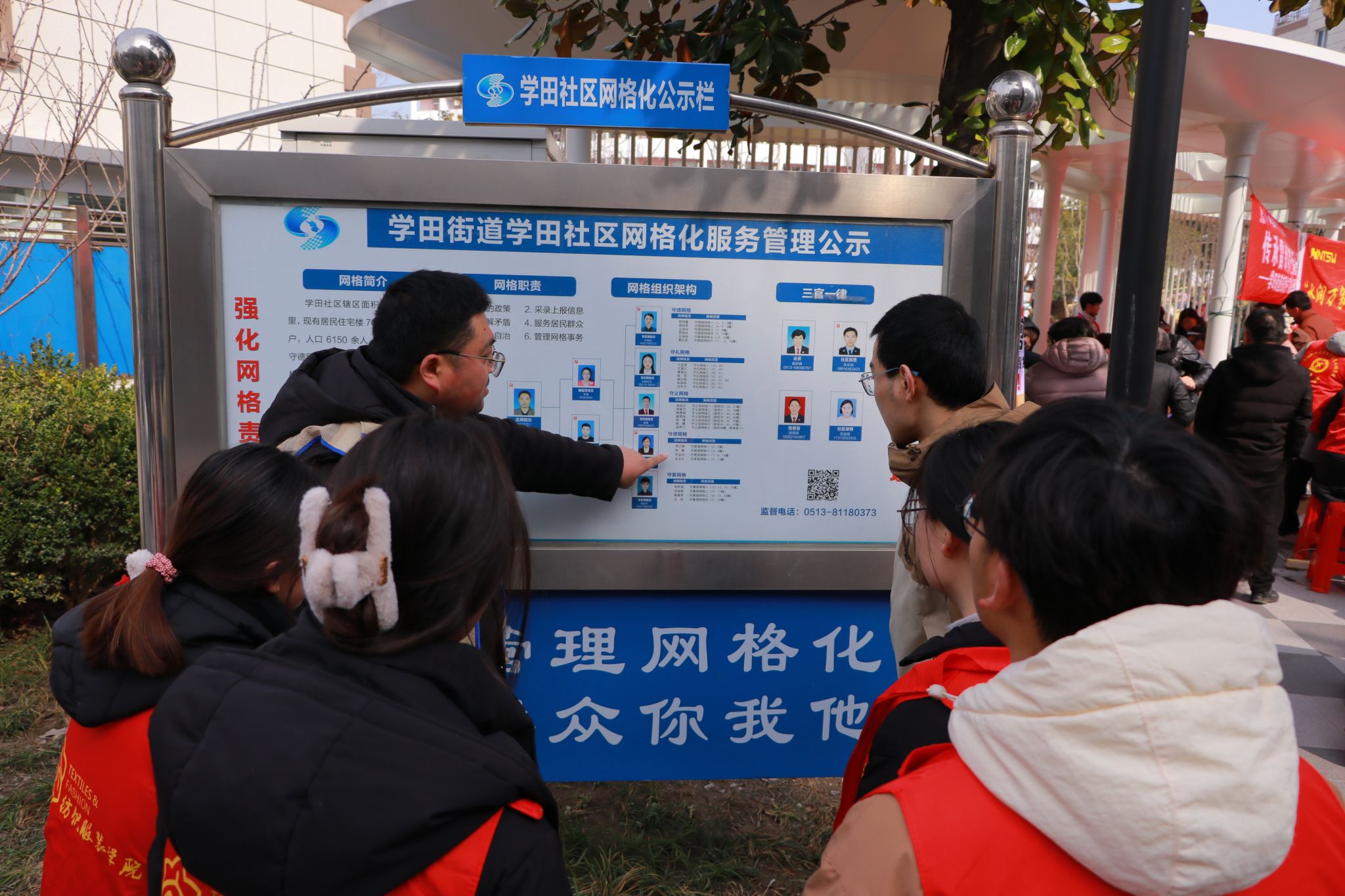 在学田社区,网格管理员沙伟向同学们介绍了学田社区的治理理念和具体措施。沙伟表示,在基层党组织的引领下,学田社区秉承“六力共治”的理念,已经形成了横向到边、纵向到底的精细化服务管理模式,使老旧小区焕发出新的活力。在民心花园,“经纬科普团”学生代表以用火安全、用电安全为主题,向社区附近的餐饮店铺宣传安全知识,并请店铺负责人签订了安全保证书。