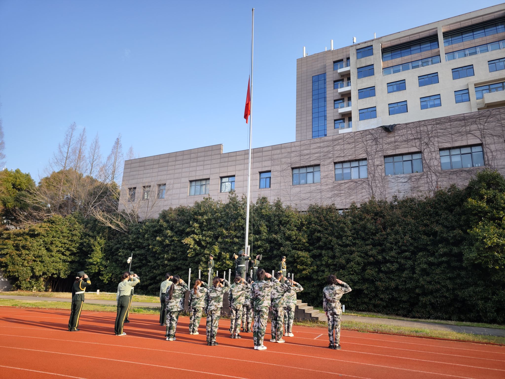 国旗护卫队迈着铿锵有力的步伐走向旗台,全场师生庄严肃立,伴随着雄壮的国歌,五星国旗冉冉升起,全体师生行注目礼,表达对祖国、国旗的尊重与热爱,传递着对祖国的深厚感情。