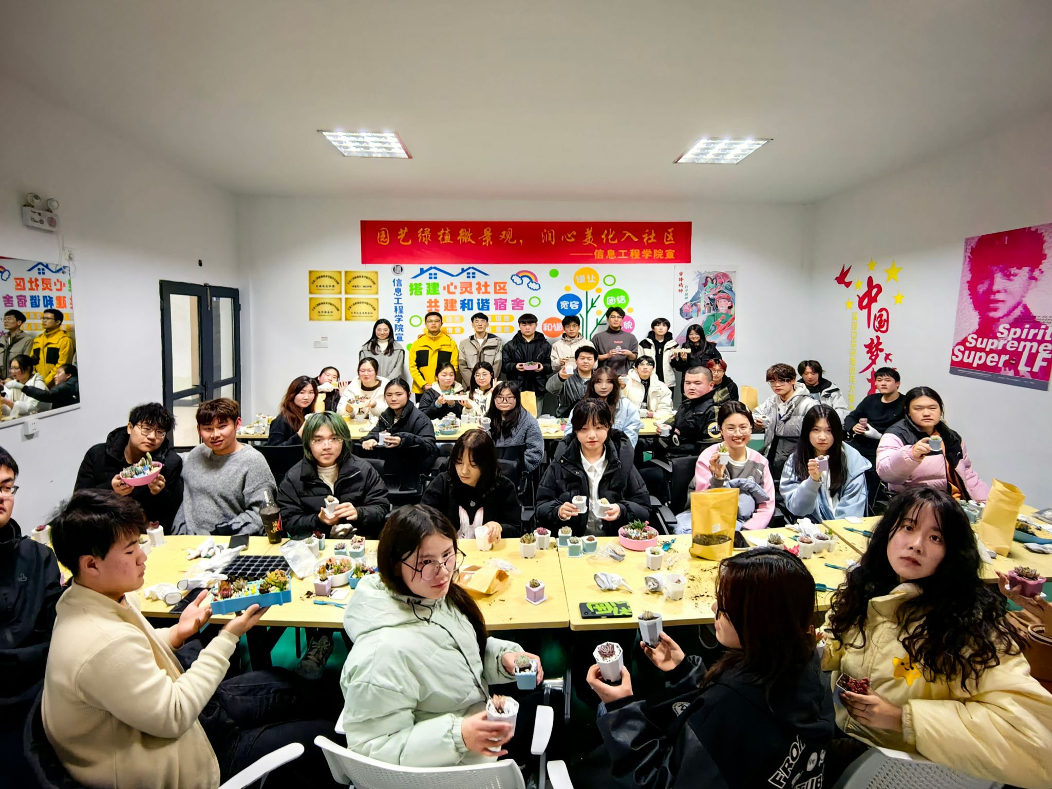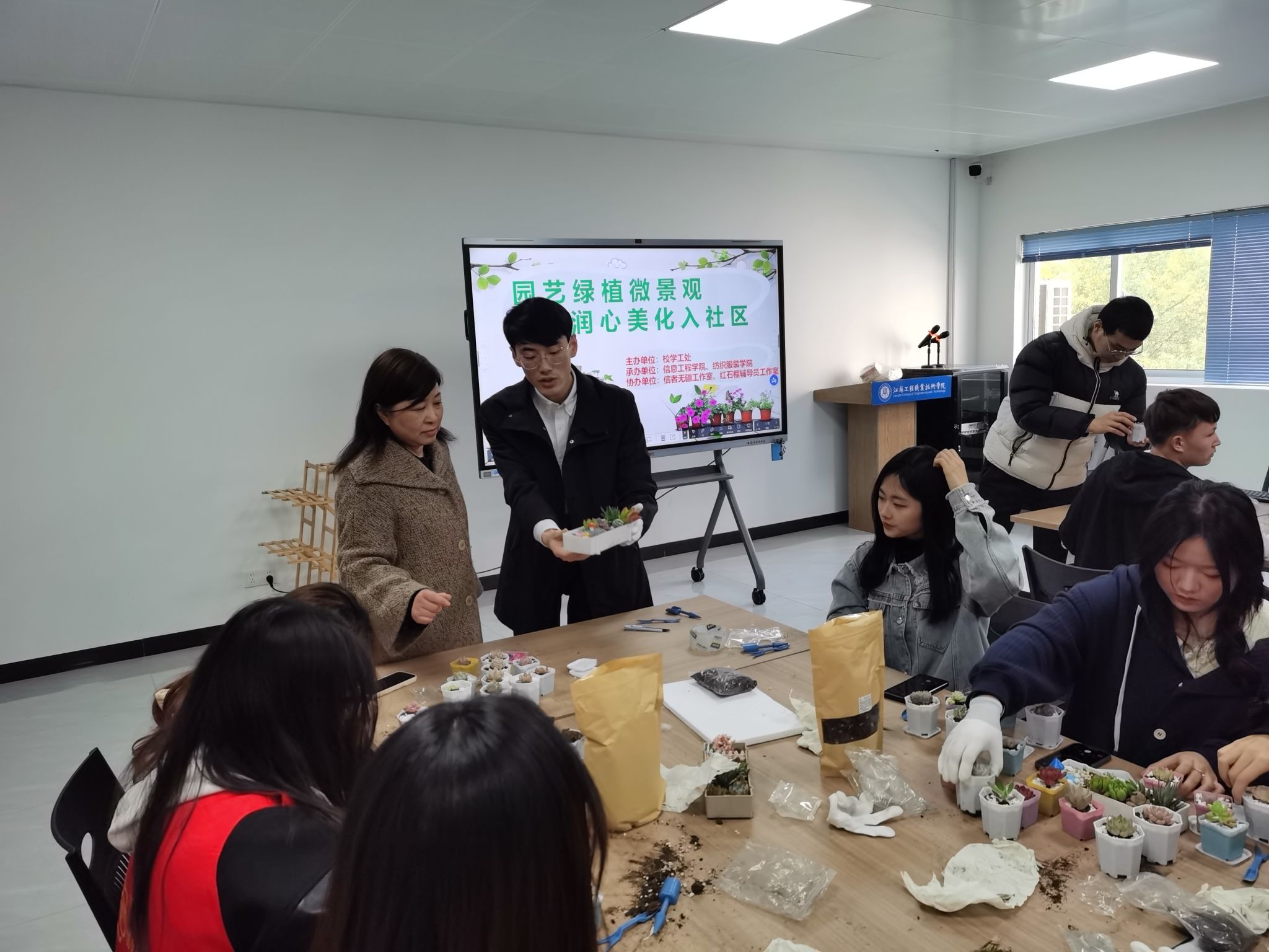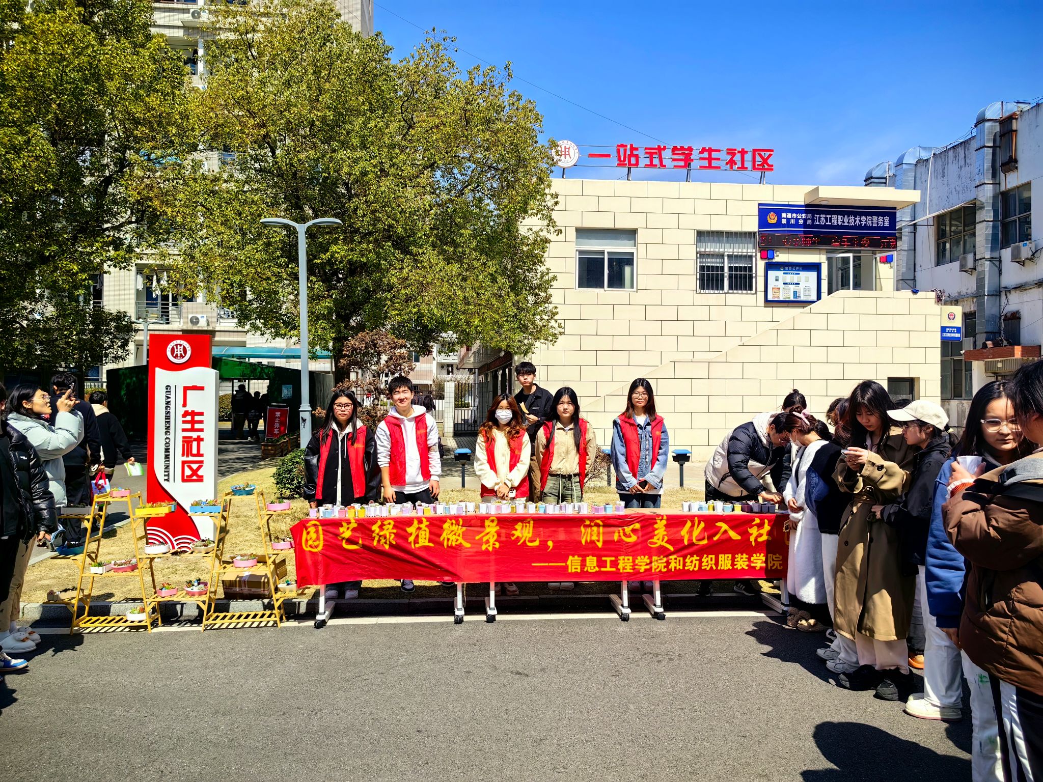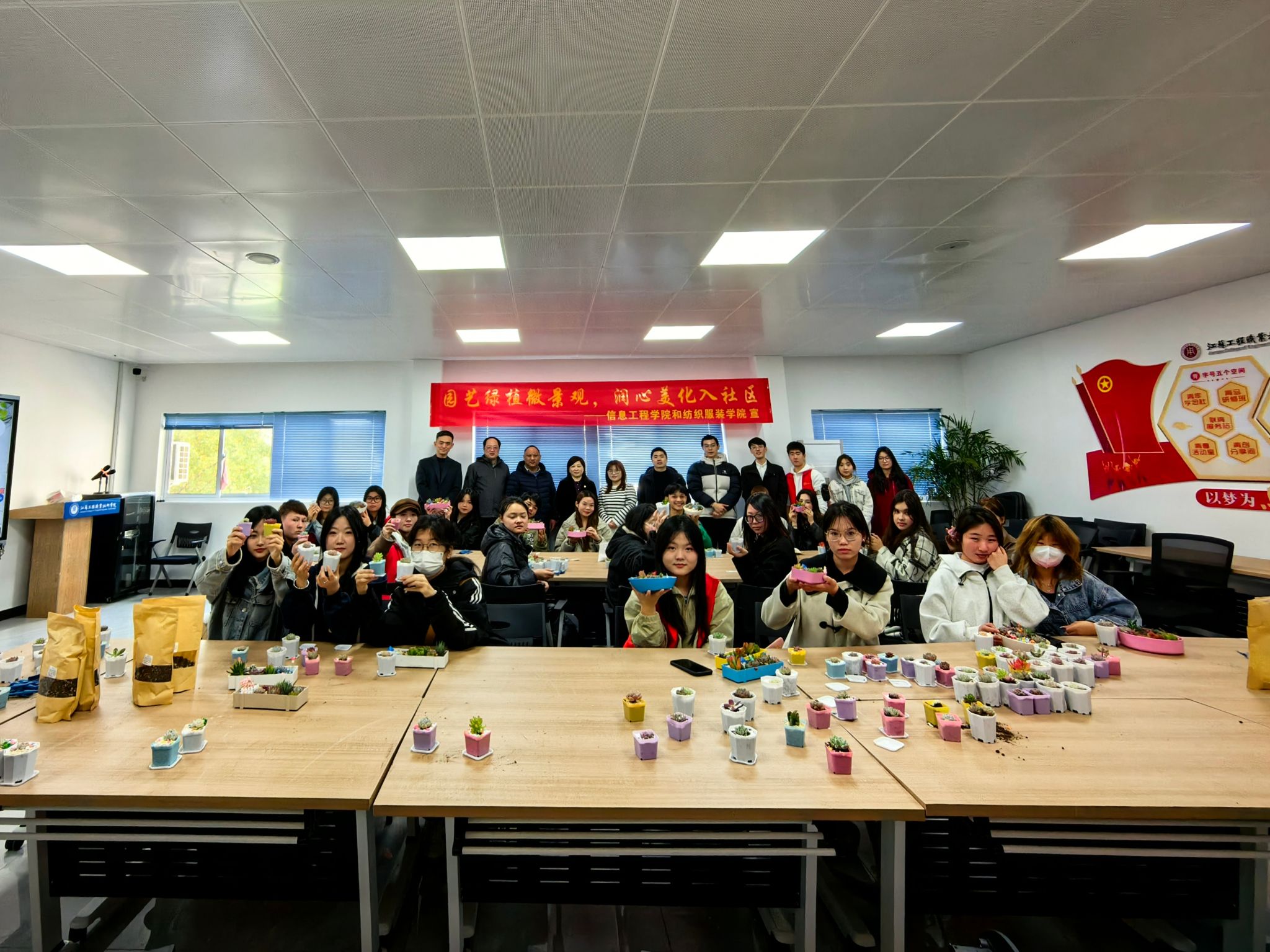 3月12日—20日,信息工程学院携手学生社区管理服务中心、纺织服装学院在两校区学生社区多功能活动室开展了“园艺绿植微景观,润心美化入社区”主题活动。校党委委员、副校长丛彬彬,学工处副处长刘宇,招生就业处副处长陆卫峰,信息工程学院党总支副书记高飞,纺织服装学院党总支副书记刘桂阳,相关学院社区辅导员,两校区各民族学生和老挝留学生参加了活动。活动由信息工程学院家长分校、“绿意育人”园艺社团承办。