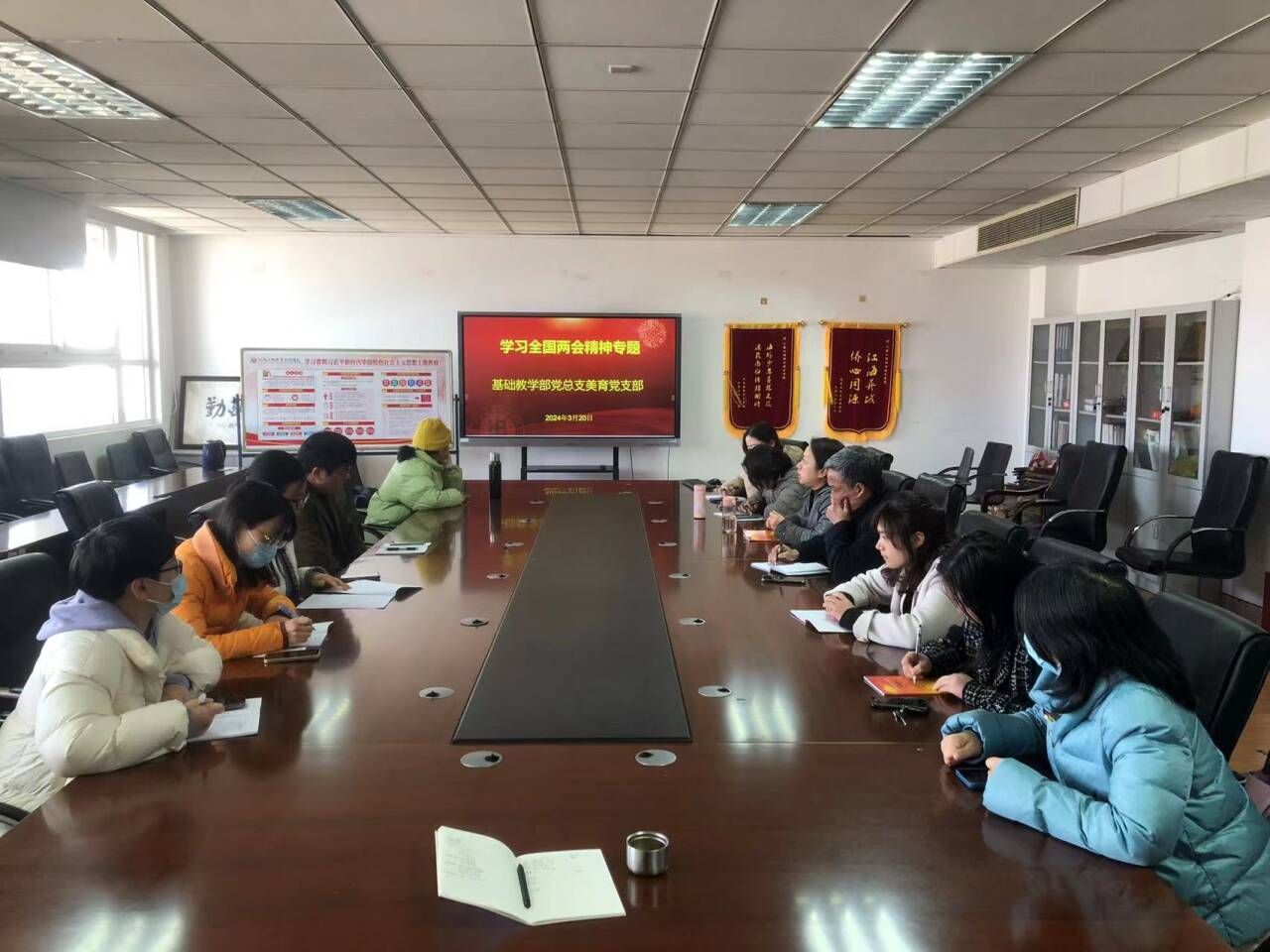 3月20日上午、27日下午,基础教学部分别通过支部主题党日活动和部门教职工政治学习活动开展了全国两会精神学习研讨活动。