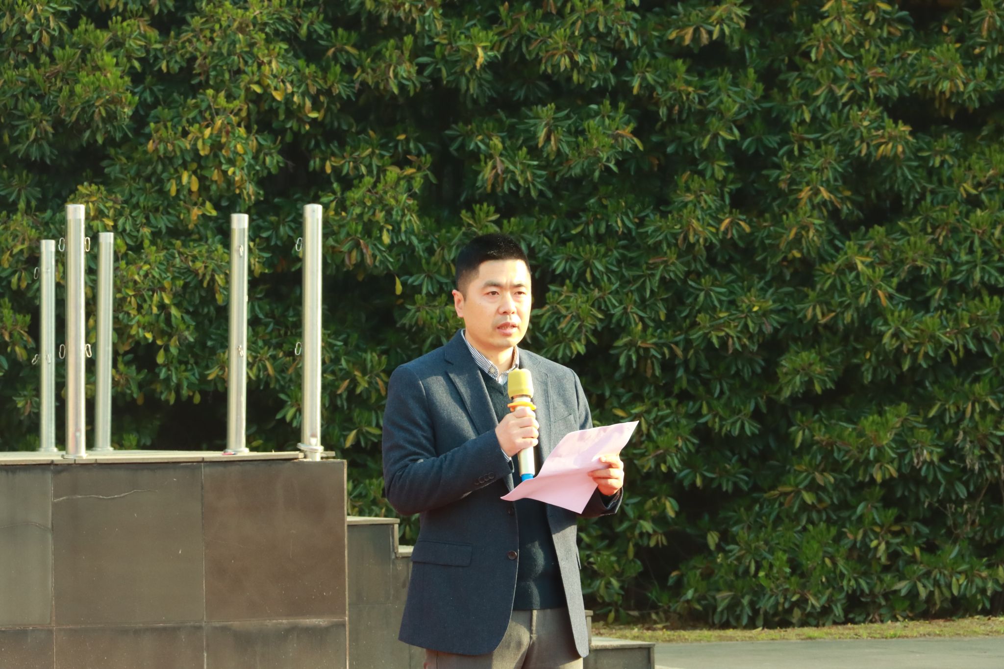 伴着国歌声响起,鲜艳的五星红旗冉冉升起,全体师生面向国旗,庄严肃立,爱国情怀在心中升腾。刘桂阳以“振奋精神,主宰未来”为主题,与广大青年学生分享“什么是精神、当代青年应该有怎样的精神、如何培养自己的精神”为大家带来一堂生动形象的信仰公开课。他勉励全体青年应该具备“积极向上、自我管理、创新实践、勇于担当、不断进取”的精神,希望同学们从 “树立正确的人生观和价值观、锻炼自己的意志力和毅力、积极参加实践活动、保持积极乐观心态”做起,振奋精神、在实现中国梦的生动实践中践行青春誓言。