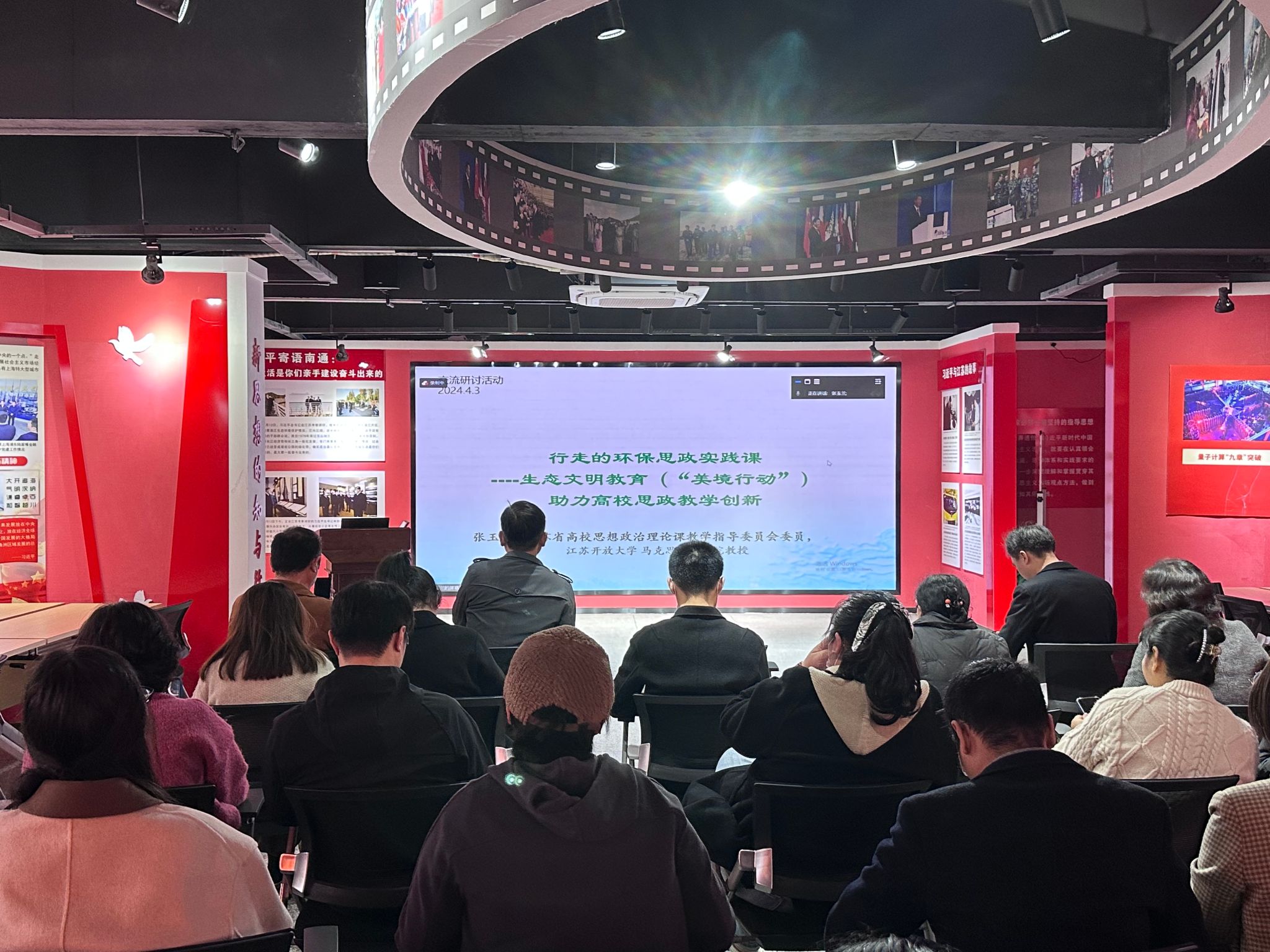 当天的活动中,江苏省高校思政课教学指导委员会委员、江苏开放大学马克思主义学院教授张玉兰应邀为全体教师作思政课实践教学研究专题讲座。她以“行走的思政实践课——生态文明教育(‘美境行动’)助力高校思政教学创新”为主题,通过详实的案例数据、精细的方案设计、严格的实施要求,全面展示了她指导开展思政实践课的教师情怀、具体做法和成果成效,为我校思政实践课教学改革提供了优秀的教学范式。在问答环节,张玉兰教授还在线与教师们进行互动,解答了“如何将思政实践课覆盖更多学生”“思政实践课的评价方式”等问题,在听、问、答的互动中,增强了教学实效。