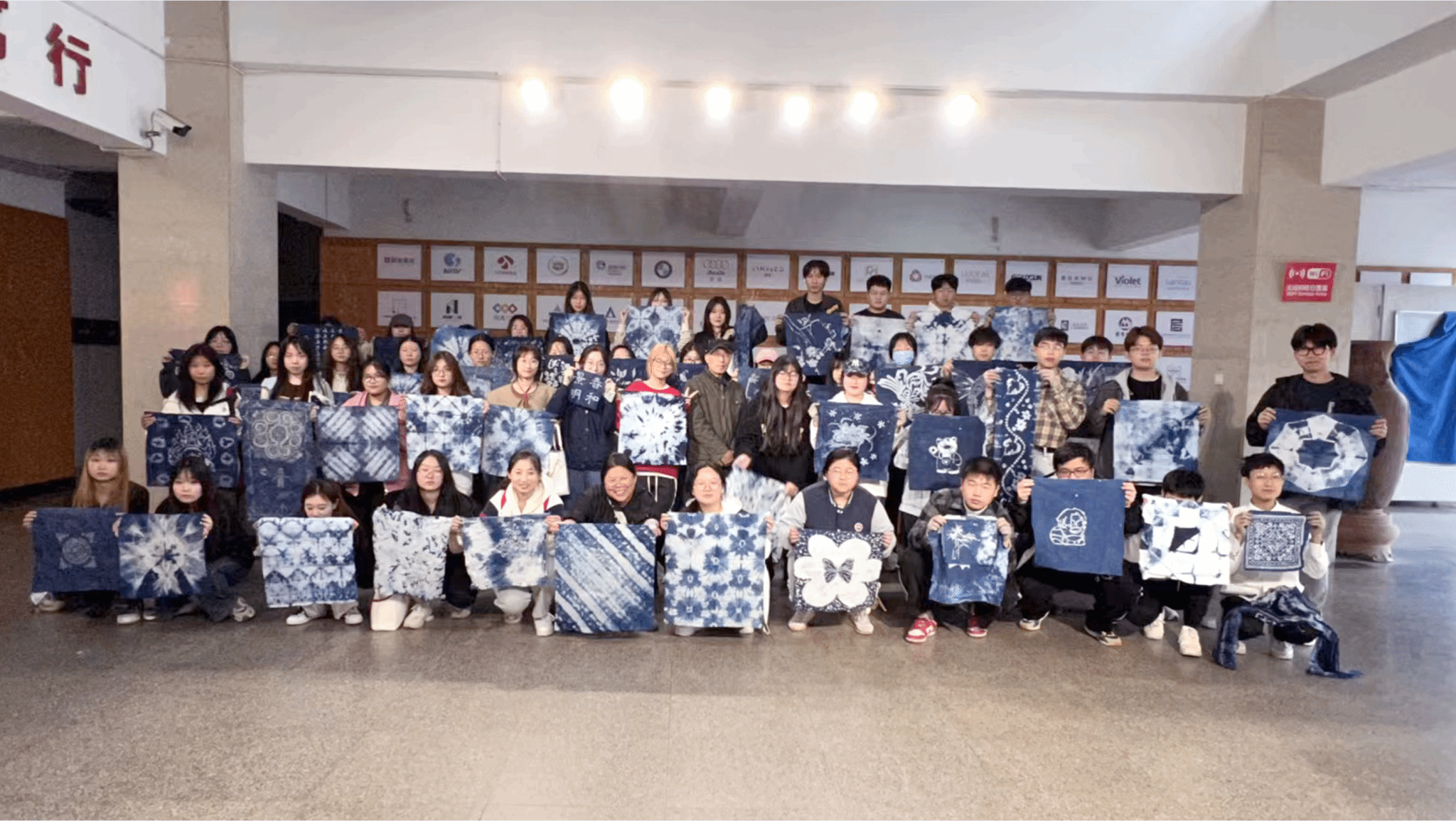 龚建军老师从中国传统四大防染技艺的历史文化和技法特征方面让同学们了解传统印染技艺的区别,并带领同学们进行了手工扎染和手工蜡染设计与实践。同学们在龚建军的带领下将自己设计的图案手工染制,将一幅幅作品呈现出来,在染制的过程中充满快乐的惊喜。