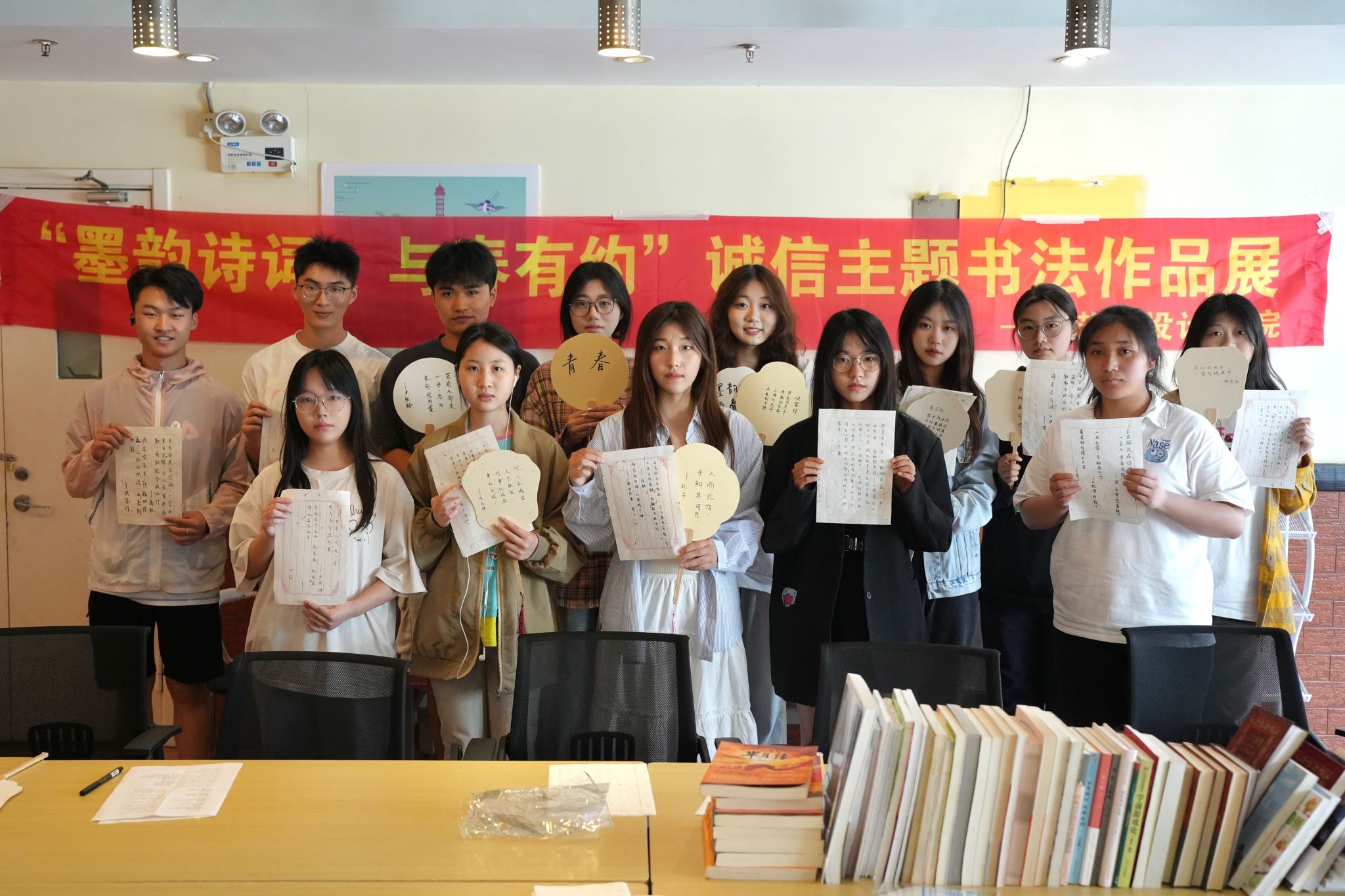 5月8日下午,艺术设计学院在崇川校区红色家园活动室举办“墨韵诗词,与春有约”诚信主题书法展示活动,辅导员张馨玉及20余名学生代表参加。