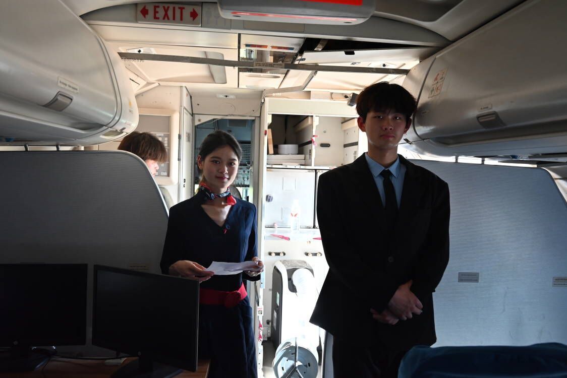 活动当天,飞机维修专业负责人连亮给同学们讲解了飞行的基本原理、航空历史、飞机结构等知识,空乘专业的同学现场展示了空乘礼仪、安全检查操作等,讲解员志愿者们带领同学们走进空客A320客舱、驾驶舱进行参观和体验。“这真是一次超棒的体验。”“今天我好像也当了一回飞行员。”22民航安全三班学生汪欣激动地说。