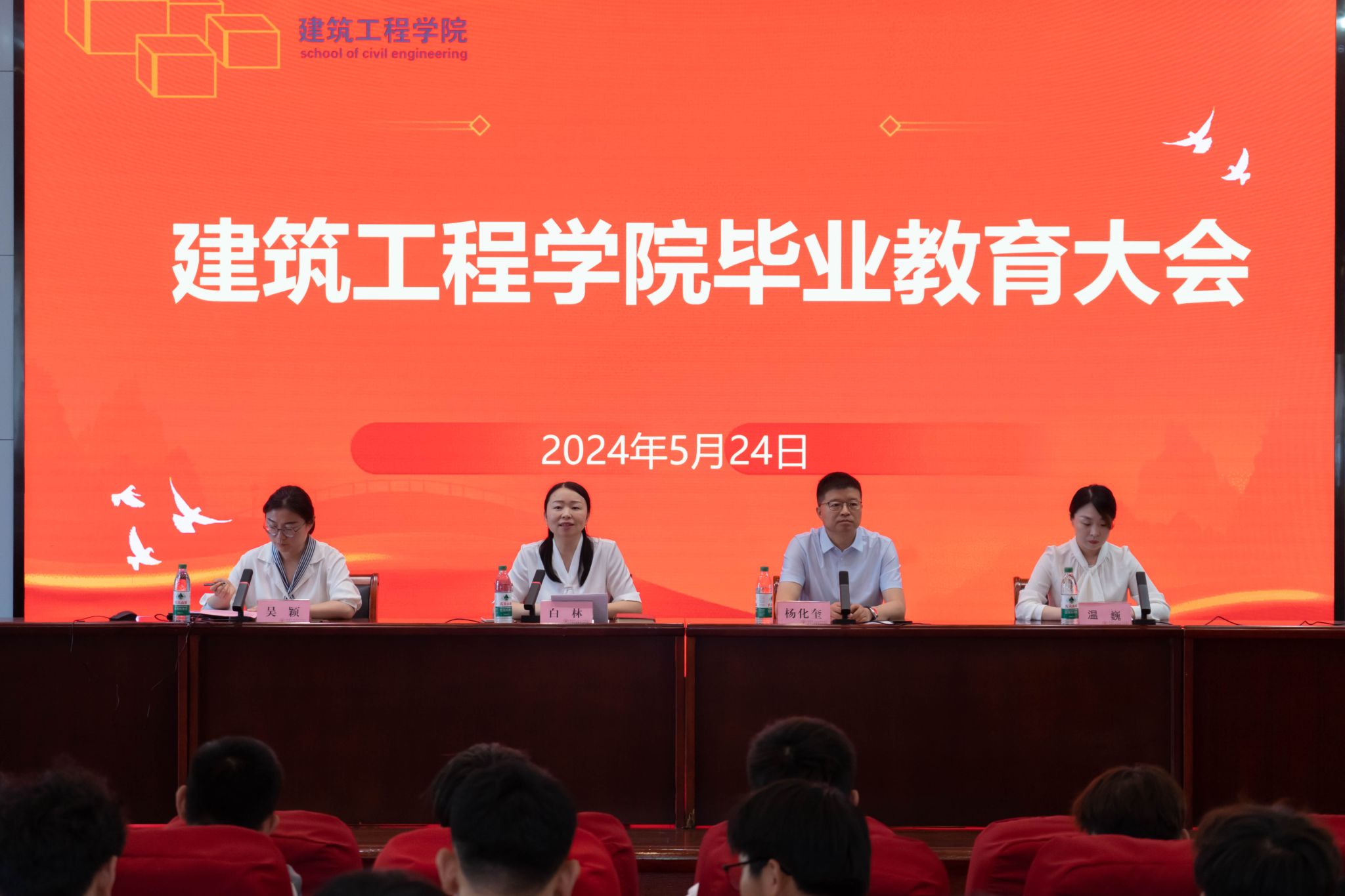 5月24日,建筑工程学院在致知楼三楼报告厅召开2024届学生毕业教育大会。学院党政领导班子、专业教师、辅导员、2024届毕业班班主任和毕业生参加大会,大会由学院党总支副书记吴颖主持。
