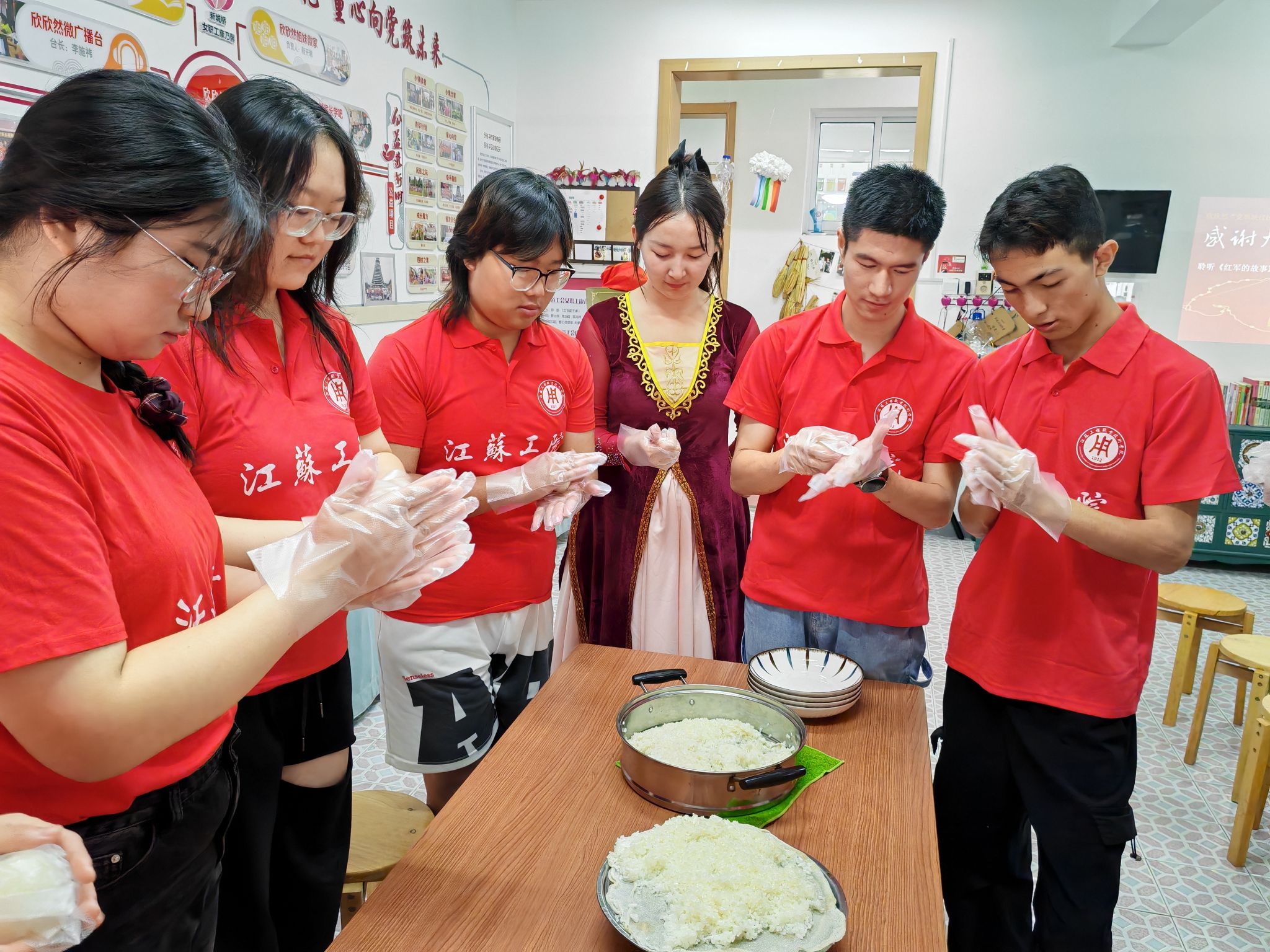 范晔和余小双共同为本次社会实践基地揭牌,陈蓉芳和周玉暄共同签署了校地共建协议并为江苏工院志愿服务团队授旗。周玉暄带领我校青年志愿者、老师参观红石榴家园,围绕家园内“蓝印花布墙”“牵手侗娃”“民族服饰墙”等板块一一介绍,让我校学子们对民族文化特色有了进一步的了解,对民族团结有了新的认识。志愿者们共同阅读红色书籍、学习红军粮的故事、观看纪录片《欣欣然的世界》。