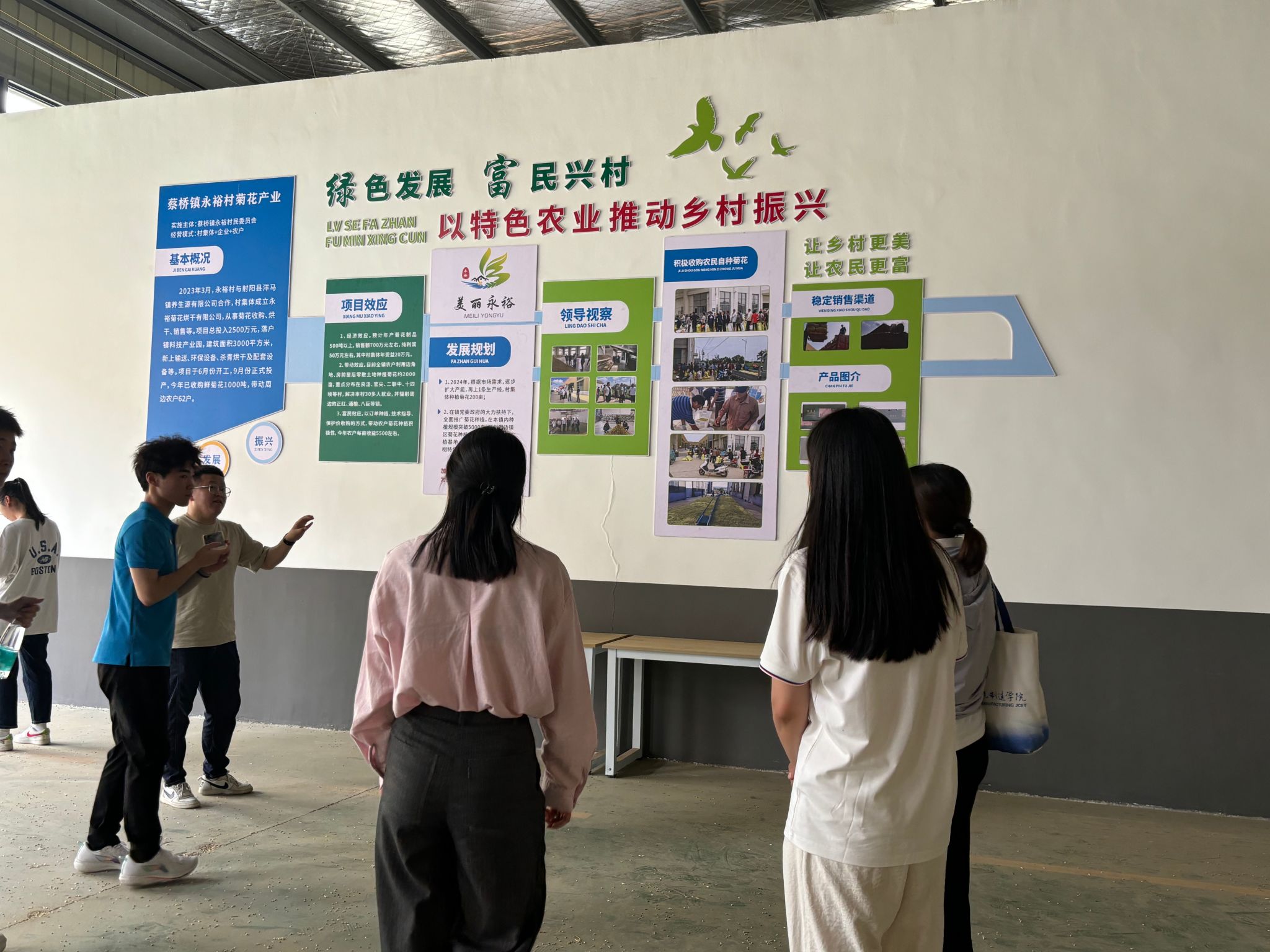 实践团走进滨海县永裕菊花烘干公司参观研学。在公司展示区,负责人介绍了该公司的成立背景,通过“村集体+企业+农户”的形式,以特色农业推动村民致富。实践团队员参观了加工生产线,一边仔细聆听工作人员的讲解,一边深切感受到永裕村以当地的特色优势,稳步推进产业兴旺,乡村振兴。参观结束后,实践团来到蔡桥镇电商直播间开展“村播助农”活动,运用电商直播核心知识和技能,开启了首场当地农产品销售的直播活动,助力农村电商产业发展,为蔡桥镇乡村振兴赋能。